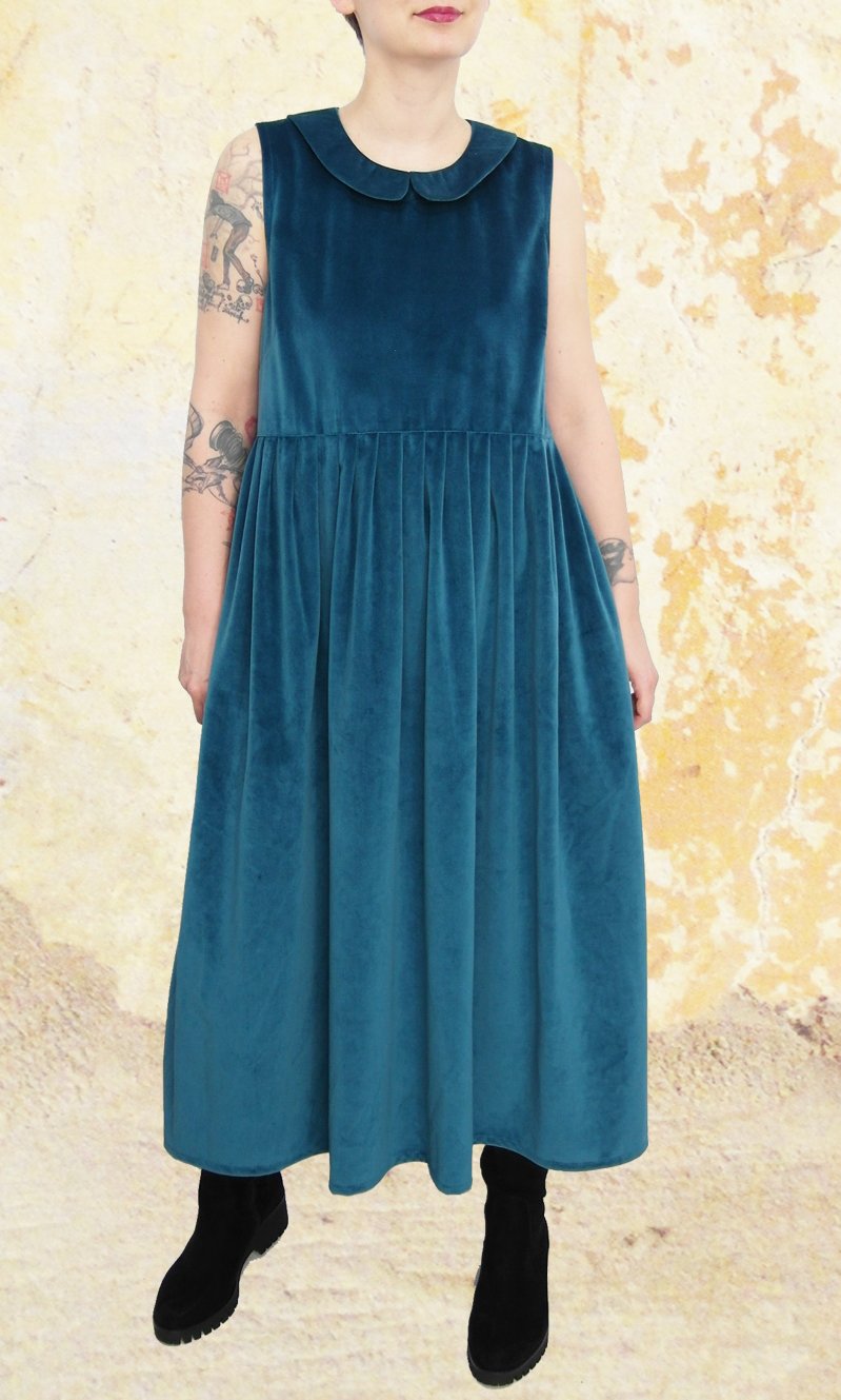 #samtkleid #bubikragen #lagenlook #kleidmitraffung #weiteskleid