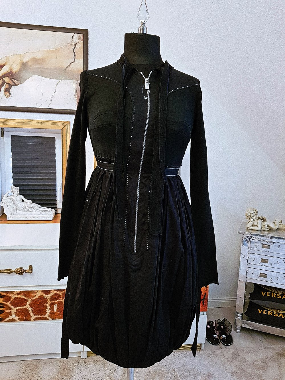 High Use Damen Kleid aus 100%Baumwolle -doppellagig/unterfüttert, schwarz (Strickärmel, Oberteil elastisch)-Größe XS-34