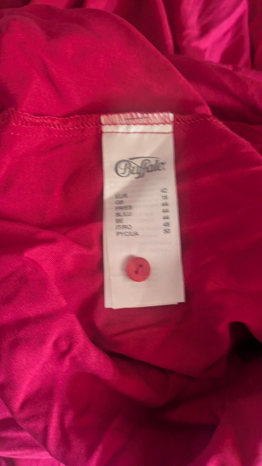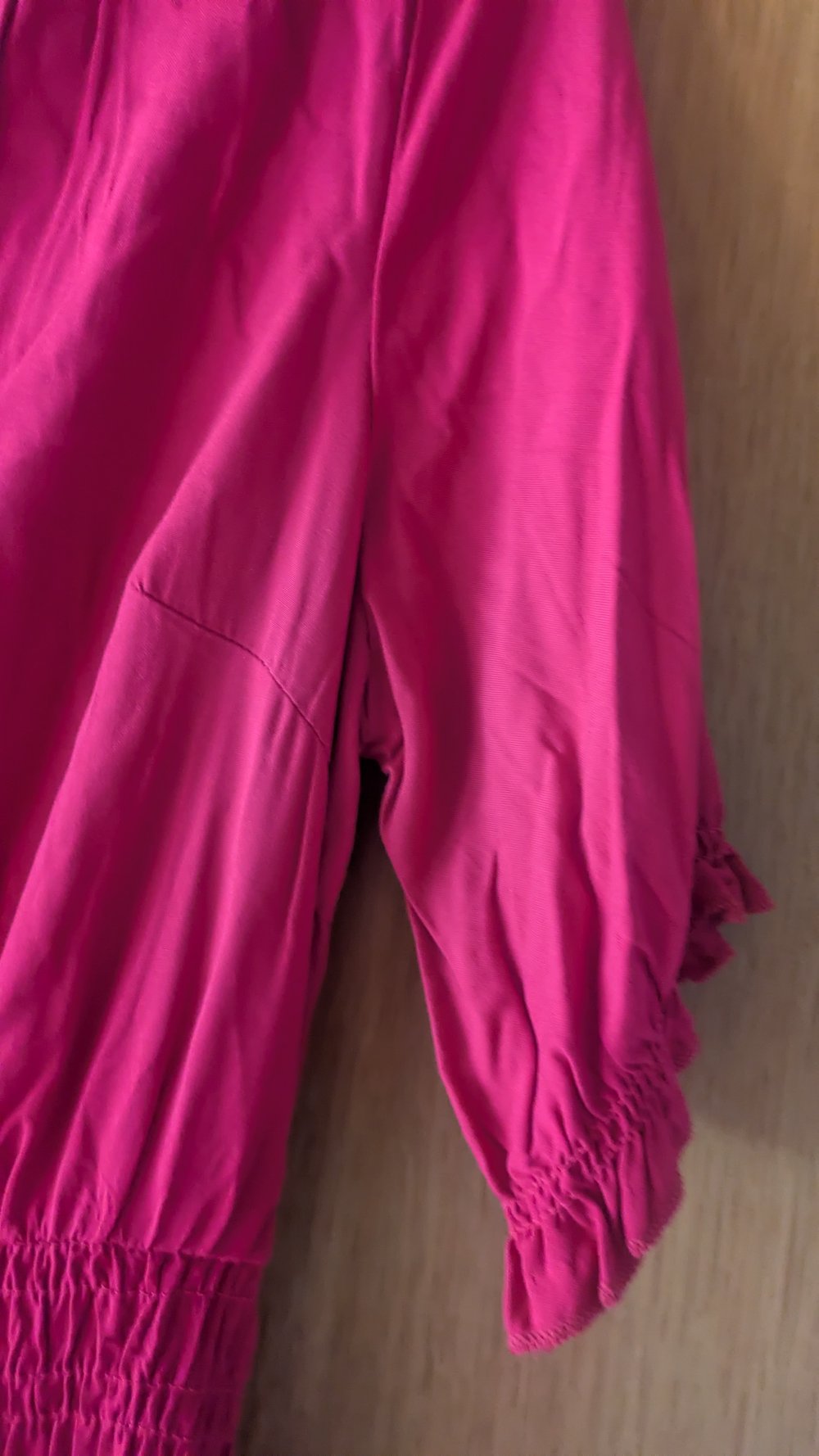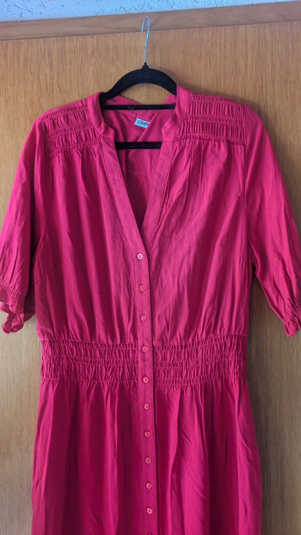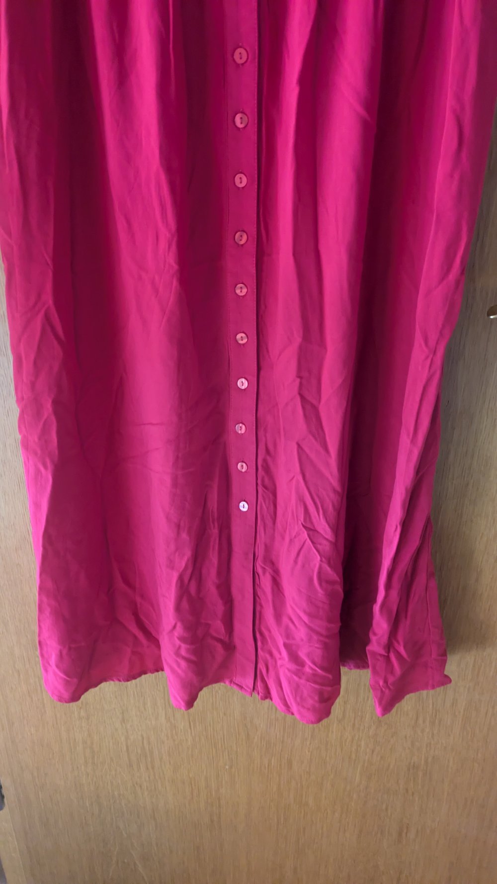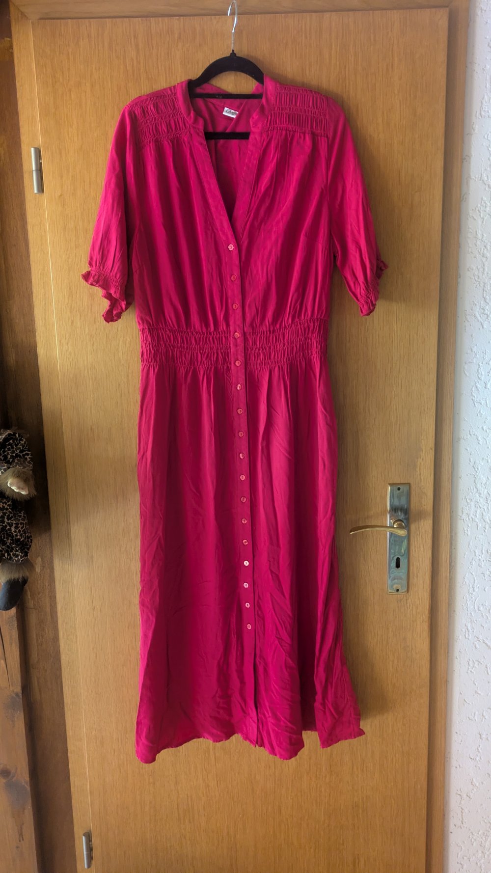 Biete hier ein Maxikleid von Buffalo in Größe 42 an. Es ist schlicht pink und besteht aus 100% Viskose. Vorn befindet sich eine durchgängige Knopfleiste. Die kurzen Ärmel haben eine elastische Raffung. In der Taille hat das Kleid eine breitere elastische Raffung und nach unten hin fällt es schön locker. Das Kleid ist neu und ungetragen, es hing nur im Schrank. Nun gefällt es nicht mehr.