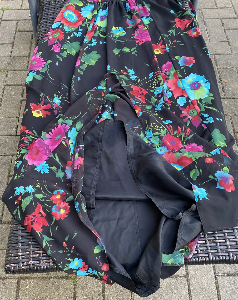 ???? Perfekt für Sommer, Gartenparty, Urlaub oder festliche Anlässe – ein echter Hingucker mit fließendem Fall und traumhaft buntem Blumenprint.
