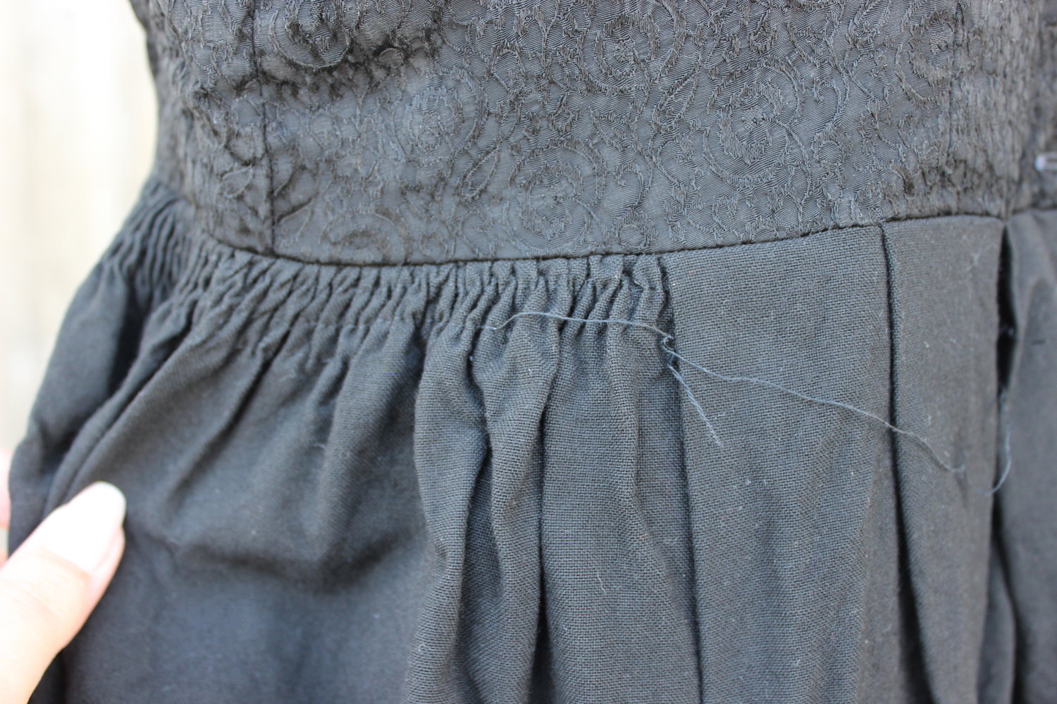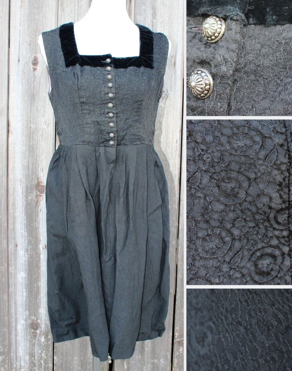 True Vintage, Vintagedirndl, Vintage, Kleid, Dirndl, Trachtenkleid, schwarz, gemustert, Muster, Brokat, Gothic, allblack