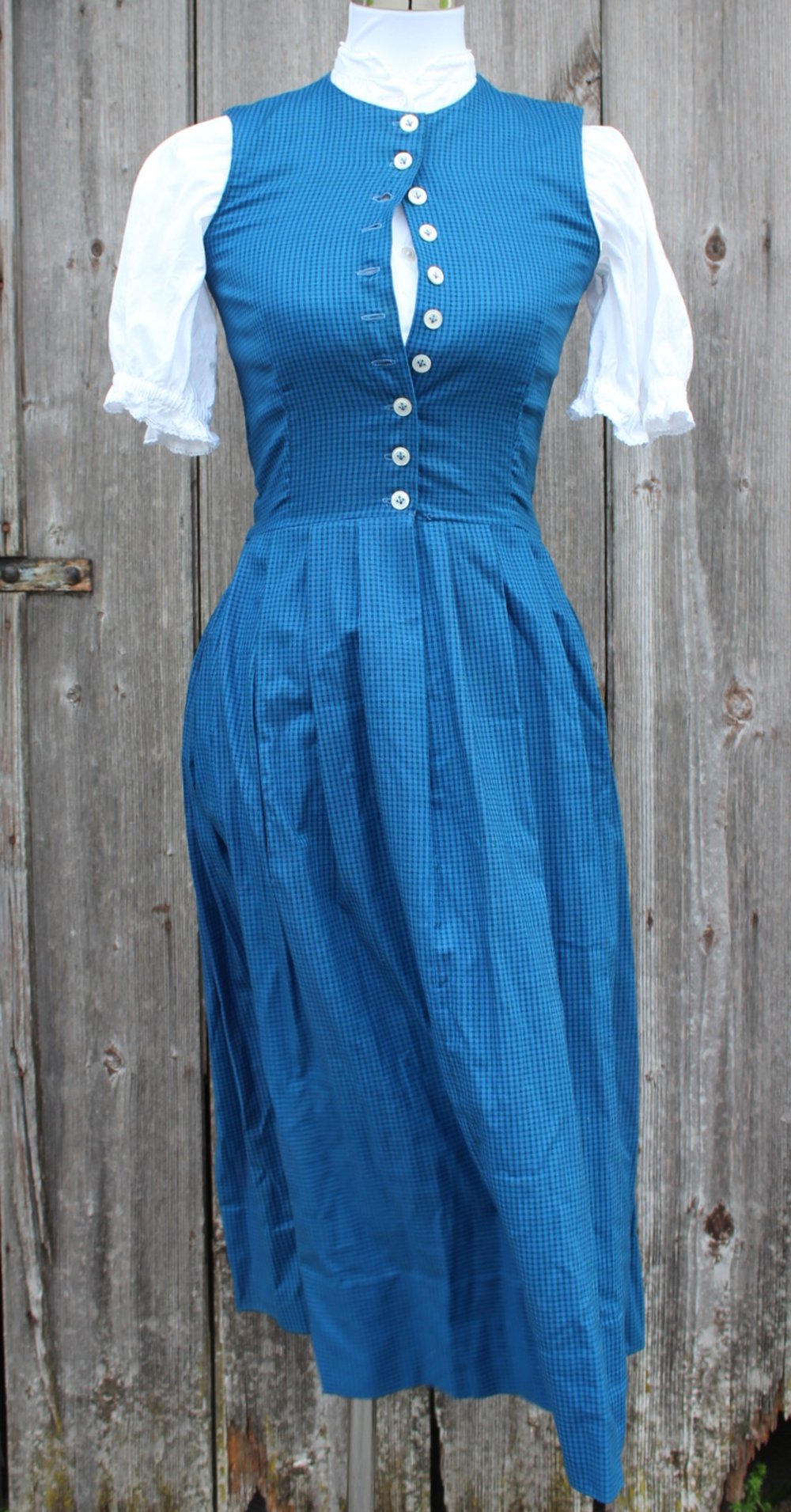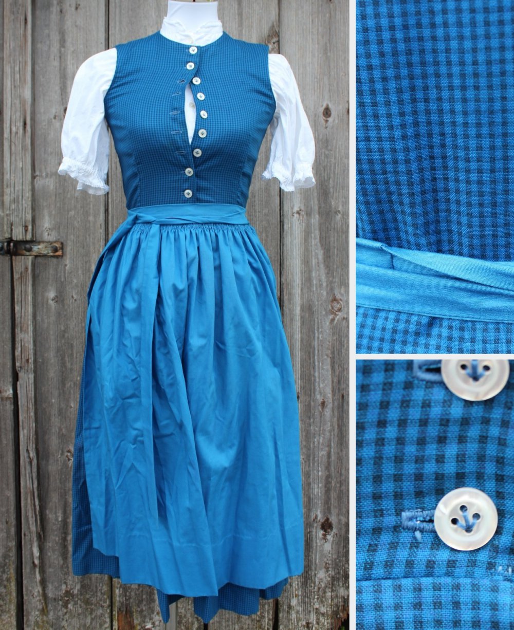 blau schwarz kariertes Vintagedirndl (inkl. Schürze und Bluse), DIY Unikat, ca. Größe 36