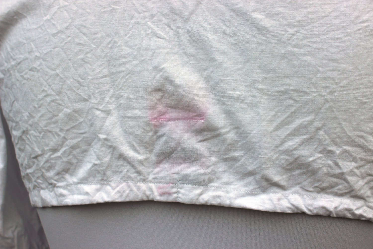Die Bluse ist beim Etikett hinten etwas rötlich verfärbt