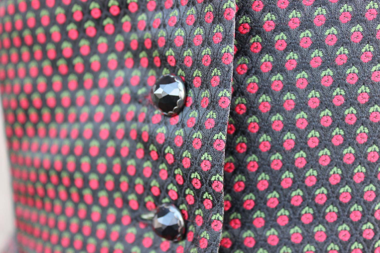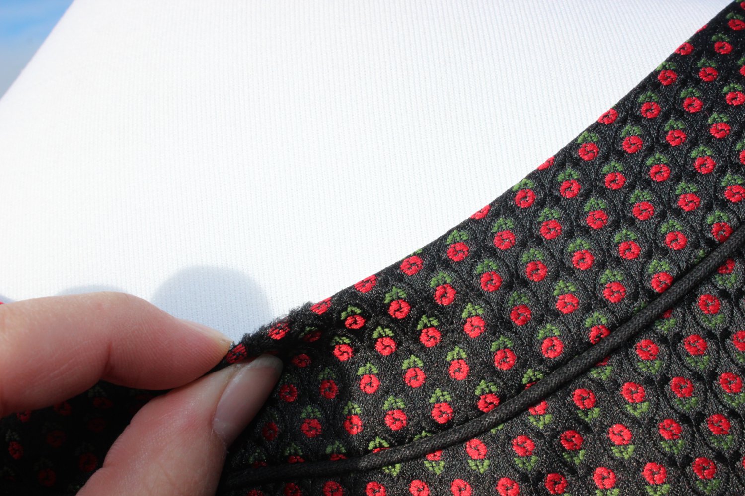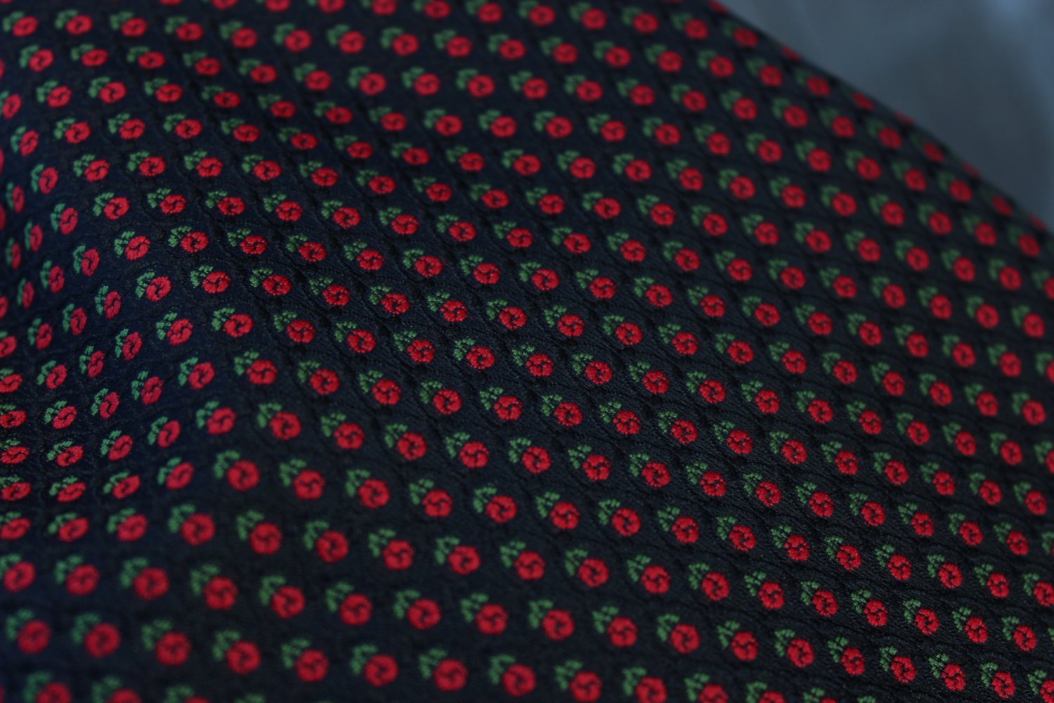 *) der neben einem schwarzen Muster auch kleine rot-grüne Blumen, Rosen, aufweist.