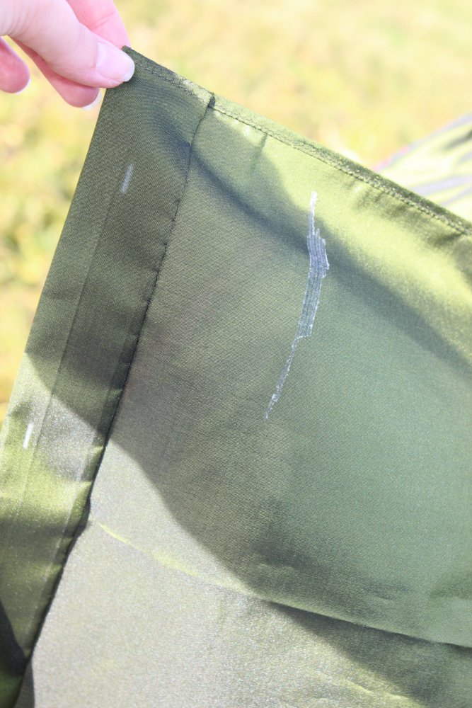 Das Dirndl hat keine Löcher, Flecken o.ä. – lediglich an einer Stelle (1 cm) auf Rückseite beim Nacken ist der Stoff etwas aufgeribbelt.