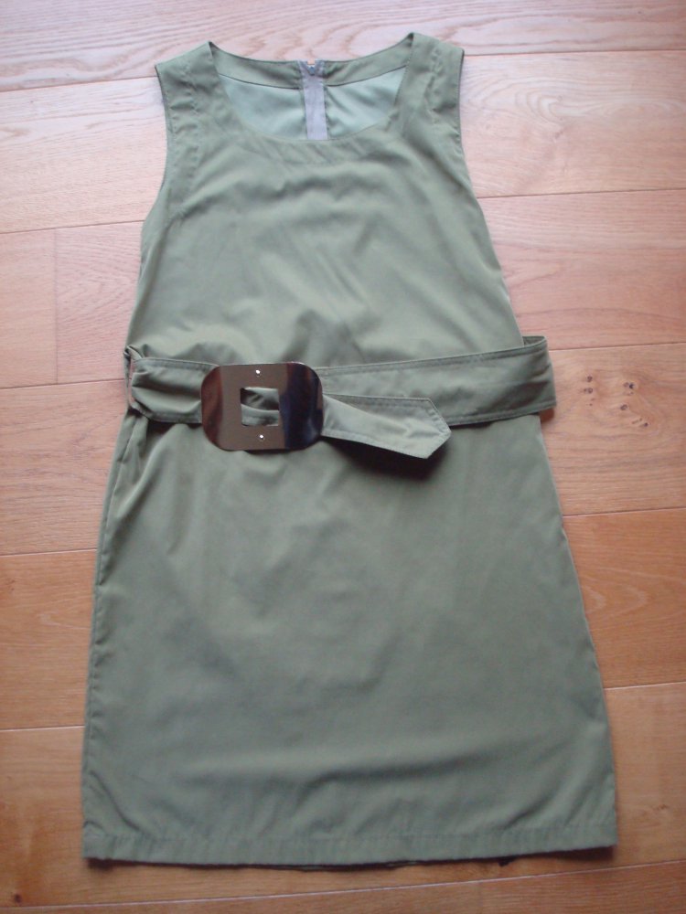 ich verkaufe hier ein elegantes grünes Kleid mit goldener Gürtelschnalle.
