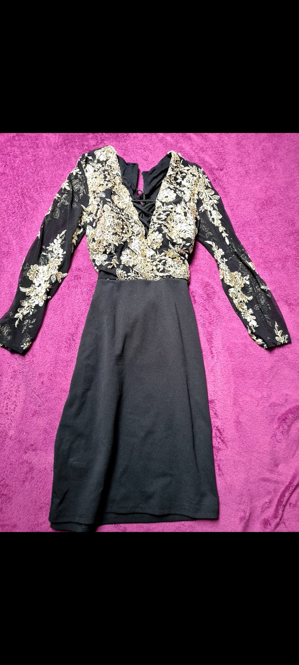 Schwarzes Sexy Minikleid mit Mesh Ärmeln 34 36 Partykleid