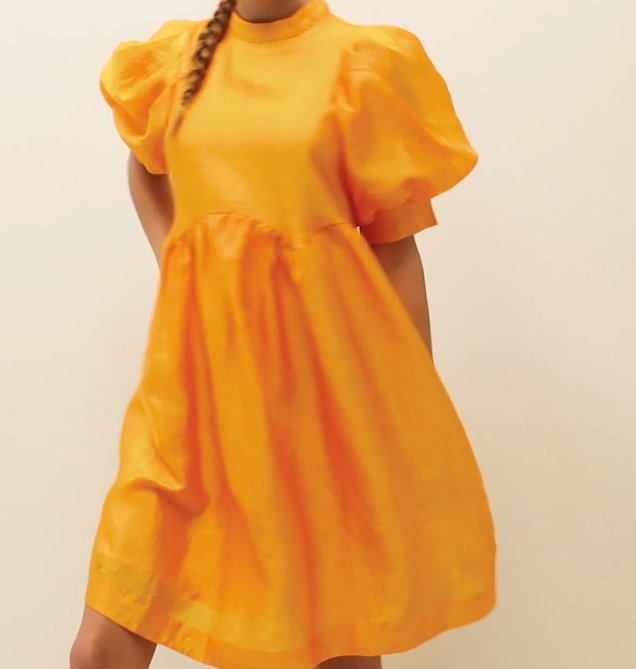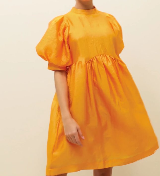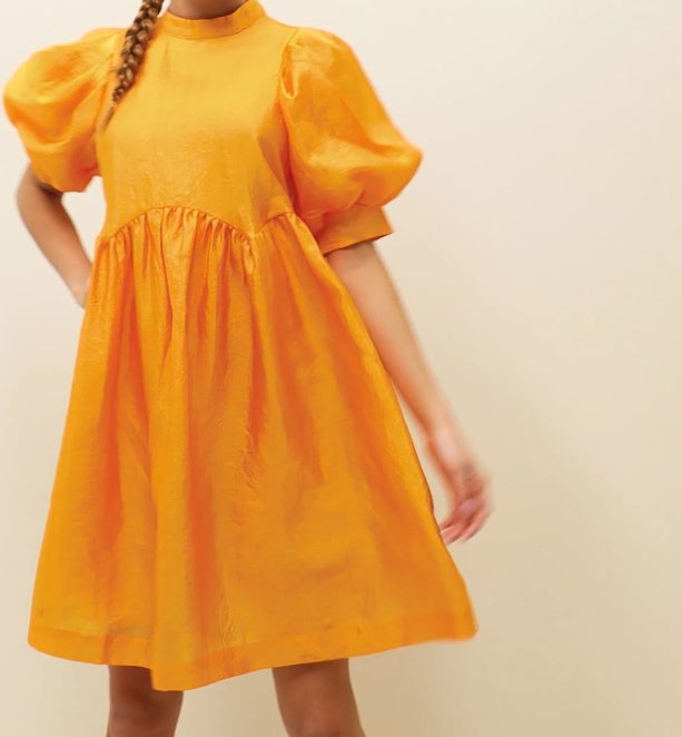 Kleid mit Ballonarm in der Gr. M (36-38) von Pieces, Farbe: orange aus Satin