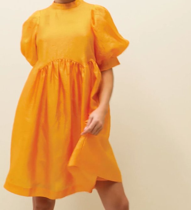 Kleid Ballonarm Gr. M (36-38) Pieces orange Satin