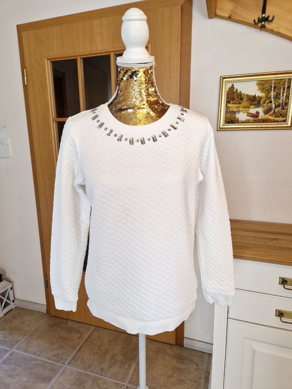 Hauber - Sweat Shirt mit Stickerei und Glitzer, weiß, Viskose - Gr. M / 38