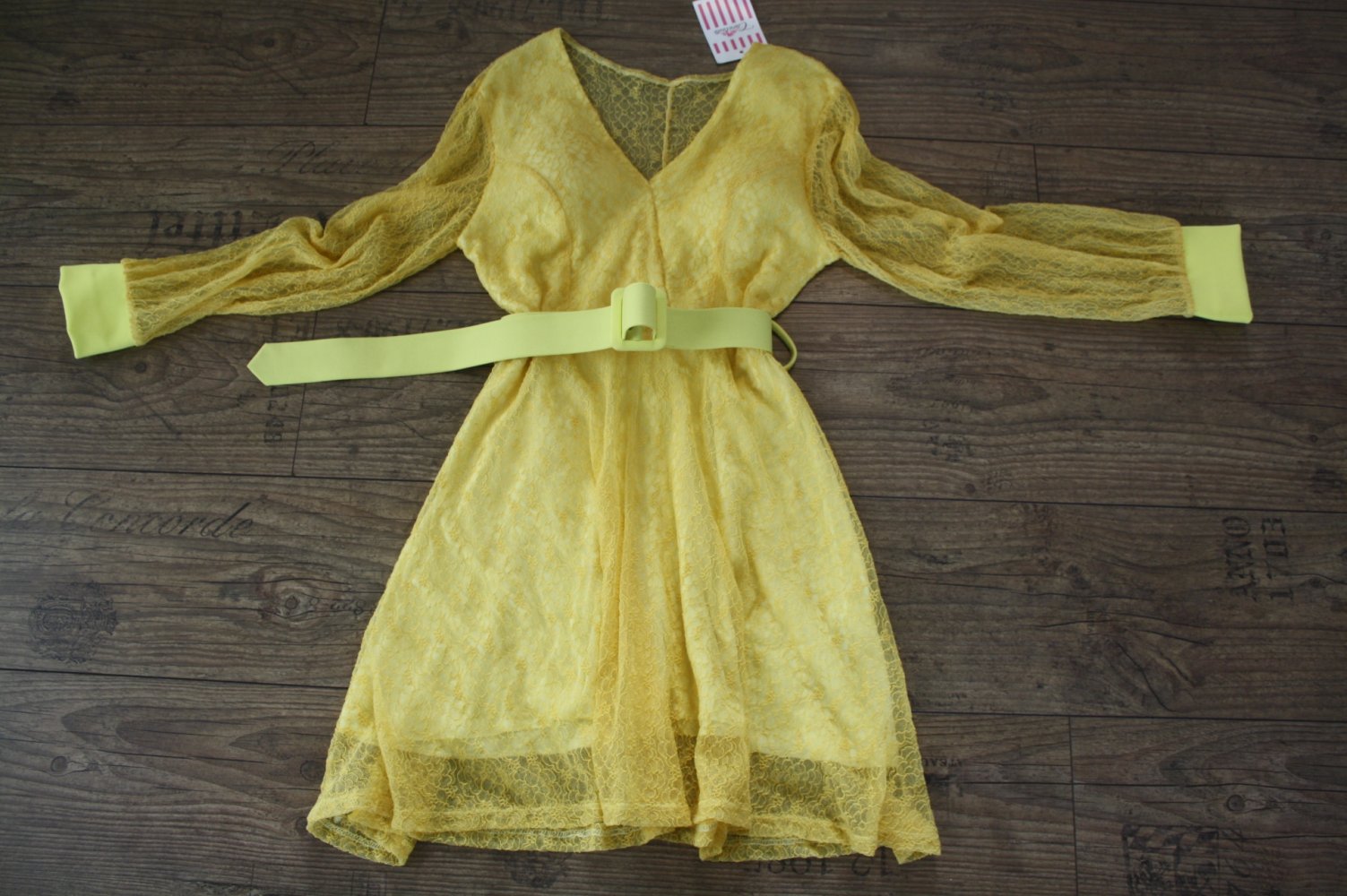 Clara Castle Trägerkleid gelbes Spitzenkleid Sommerkleid Salsa Lambada S 36