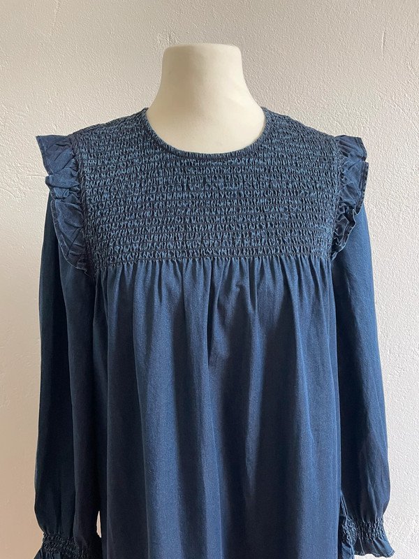 Madewell Denim Babydoll Kleid mit Raffungen und Volant