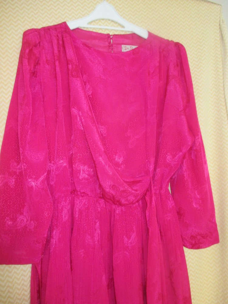 NEU mit Etikett * Edel * Original VINTAGE * Seiden- Satin * Paisley * Punkte * Dots * Print * Wickel- Optik * Maxi- Kleid "Betty Barclay" Gr. 40- 42/ M * pink *