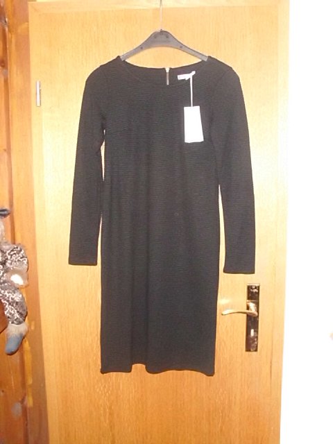Biete hier ein Kleid von Noppies in Gr. 36 ( S) an. Es ist schlicht schwarz, besteht aus einem Viskosegemisch und ist gerade geschnitten. Das Kleid hat eine leichte Rippenoptik und wird auf dem Rücken mit einem kurzen Reißverschluss geschlossen. Das Kleid ist neu, ungetragen und mit Etikett versehen. War doch leider zu eng.