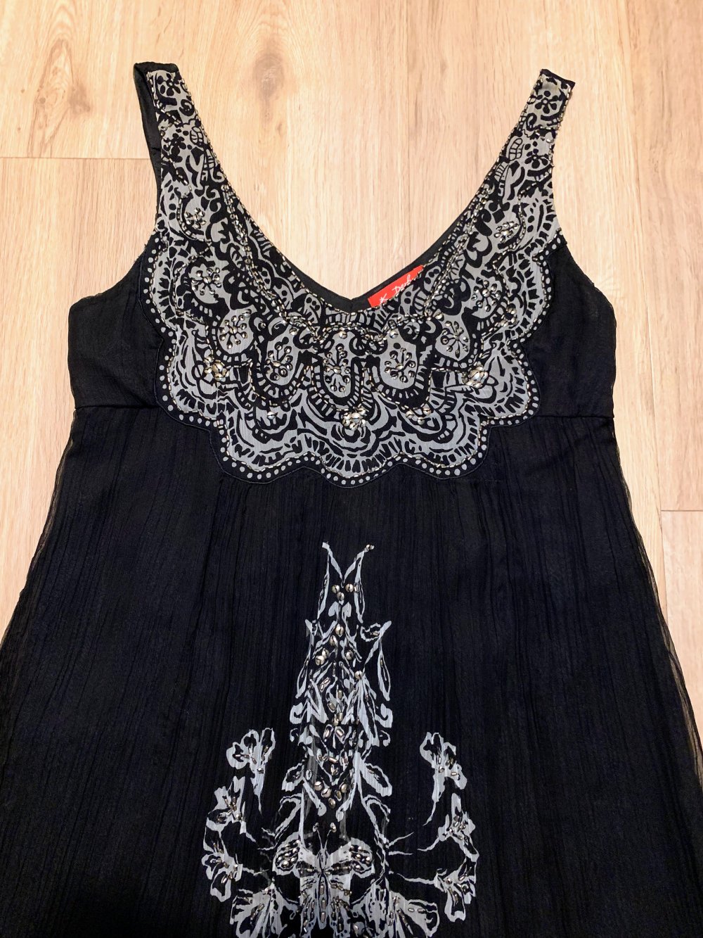 Damen Kleid Sommer mit Trägern Empire-Stil Gr.S Schwarz/Creme gemustert Derhy