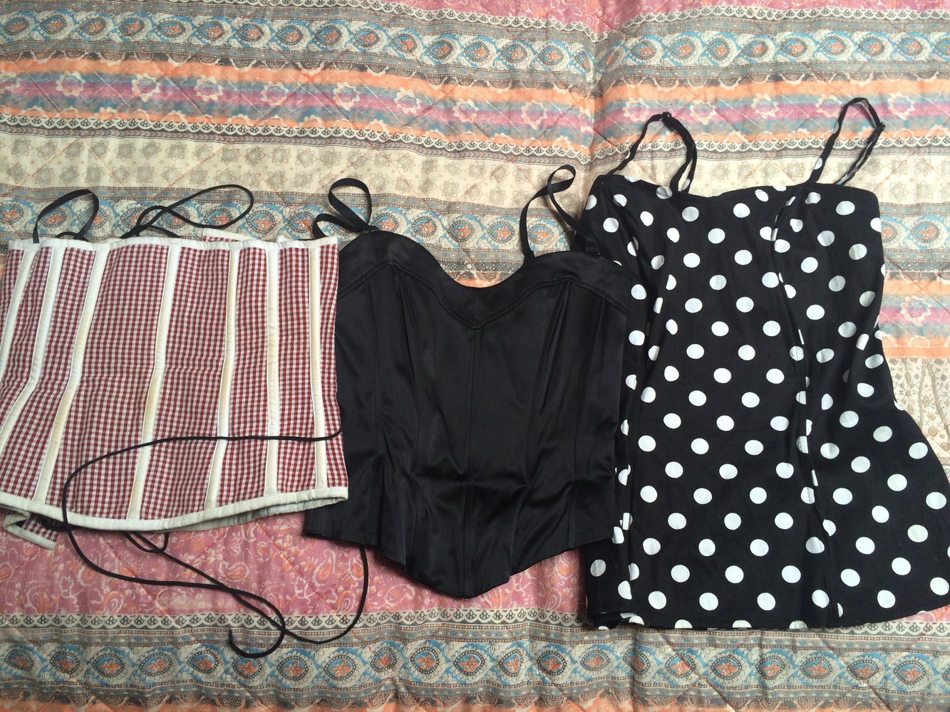 Corsagen Korsetts Punkte schwarz kariert