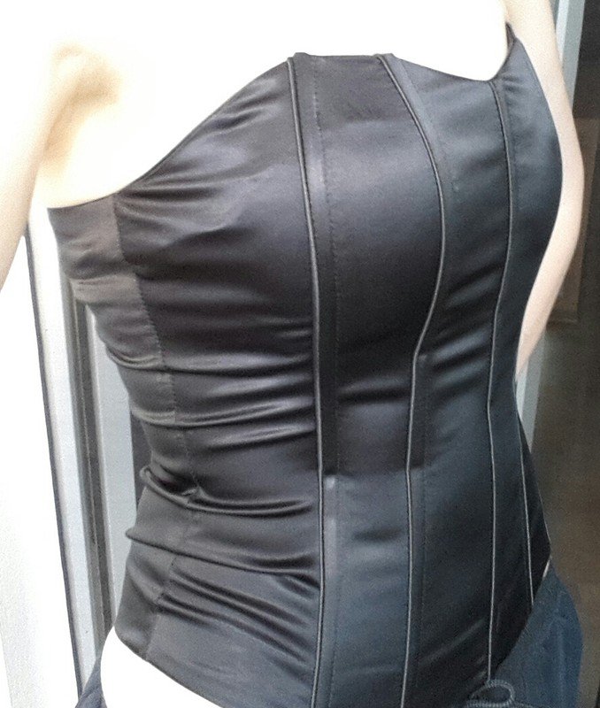 Edles Oberteil in glattem, satinähnlichem Stoff. Mit formenden Stäbchen