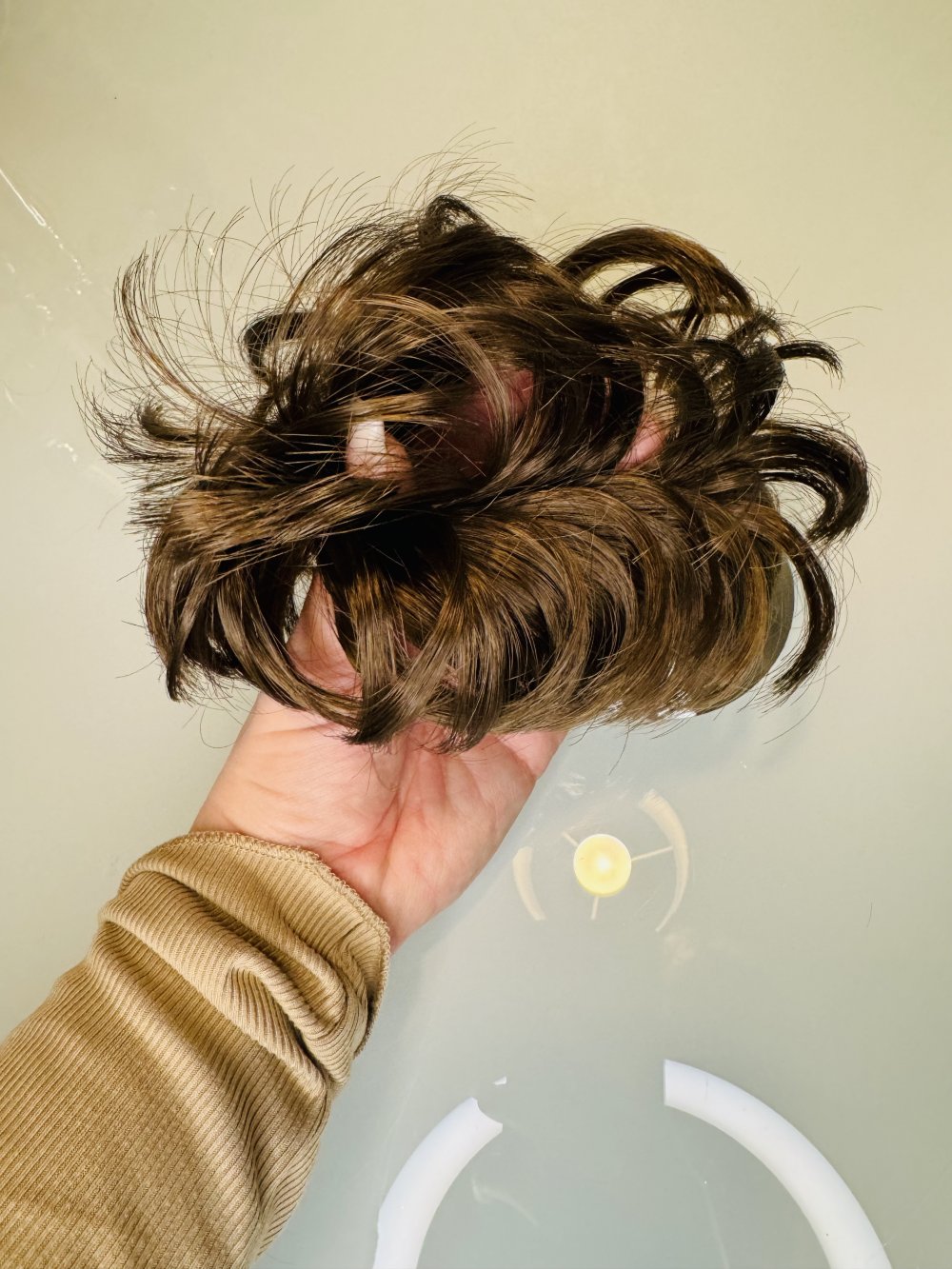 Dieses Haargummi von Shein ist perfekt für alle Damen, die ihr Haarstyling aufpeppen möchten. Das Scrunchie besteht aus Kunsthaar in einem dunkelblonden Farbton und lässt sich durch das flexible Gummi einfach und sicher im Haar befestigen. Das Produkt ist neu und ohne Etikett. Ein tolles Accessoire, um jedem Outfit den letzten Schliff zu verleihen.
