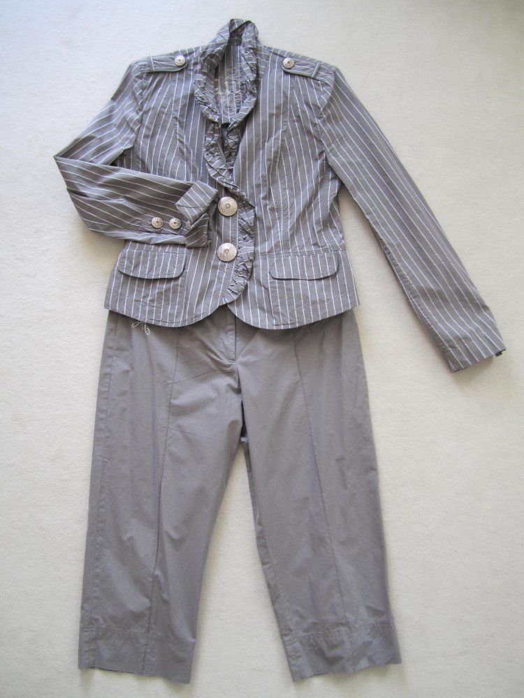 AIRFIELD Kostüm Gr. 40 Blazer gestreift 7/8 Hose taupe wie neu