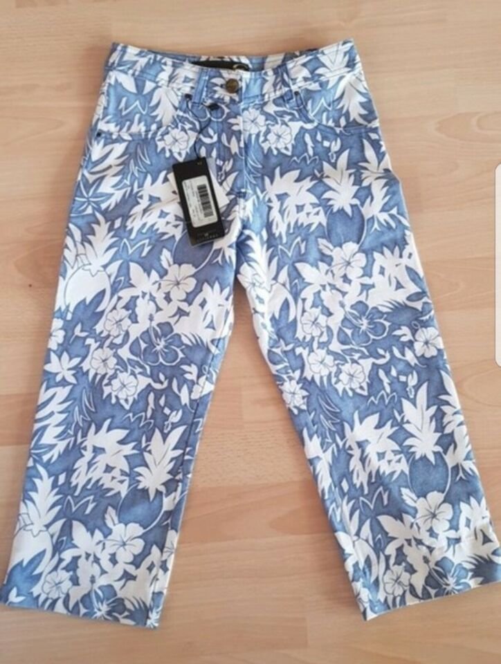NEU mit ETIKETT * 50er Jahre Rockabilly * Karibik * Blumen * Blüten * Flower Dreiviertel * Capri * Hose "Just Cavalli" Gr. 34/ XS * jeans * rauch- blau * serenity * cremè- beige *