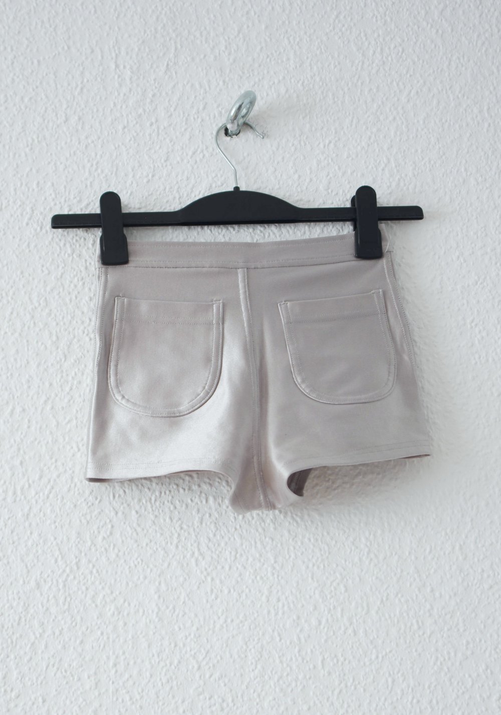 Eigenschaften: super high waist Disco Shorts, wunderbar glänzend, mit Knopf und Reißverschluss zu schließen, hinten mit aufgesetzten Taschen, kurz und tailliert - perfekt für Alltag/Freizeit, Raves, Partys, Festivals, für das perfekte 80ies-Feeling