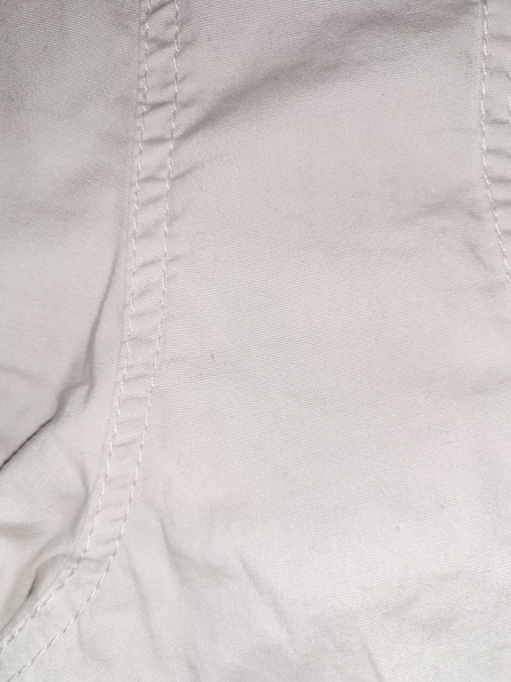 Ich biete diese Bermudahose an. Sie ist cremebeige, hat die Größe 48 und ist von Bonprix. Die Hose hat zwei Eingriffs- und zwei Gesäßtaschen. Sehr minimales Pilling ist im Schritt. Vorne links, links an der Naht und hinten auf beiden Seiten sind leichte dunkle oder rötliche Flecken (siehe Bilder). Sonst ist die Hose in einem sehr gutem Zustand.
