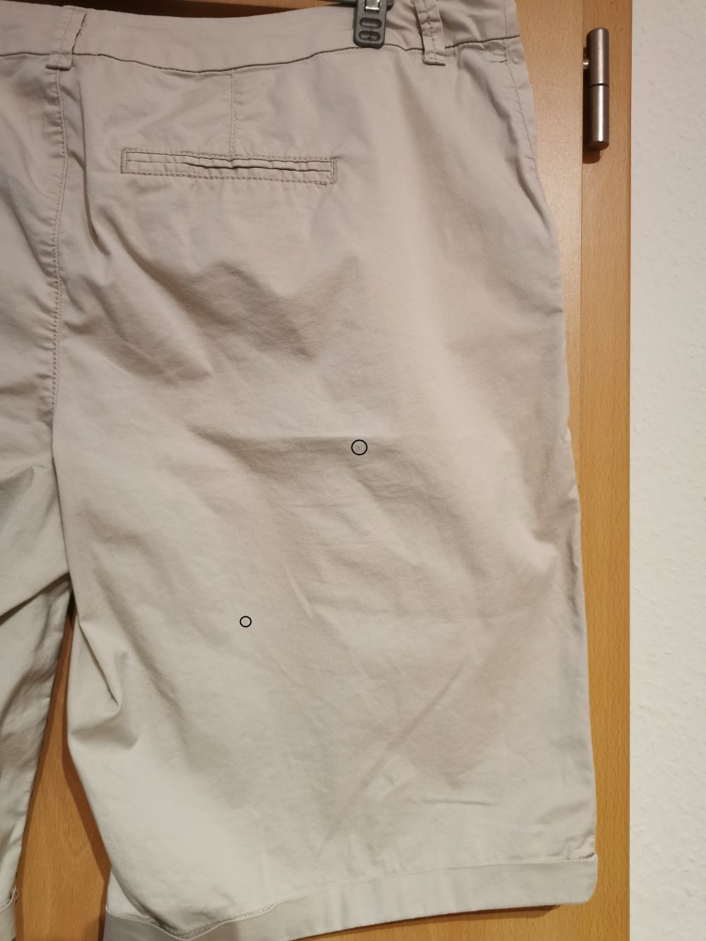 Ich biete diese Bermudahose von Yessica (C&A) in der Größe 48 an. Sie ist beige, hat zwei Eingriffstaschen zum verwenden und zwei Gesäßtaschen als zierte. Im Schrittbereich ist leichtes Pilling. Am hinteren rechten Hosenbein sind zwei kleine minimale Flecken (siehe Bilder).