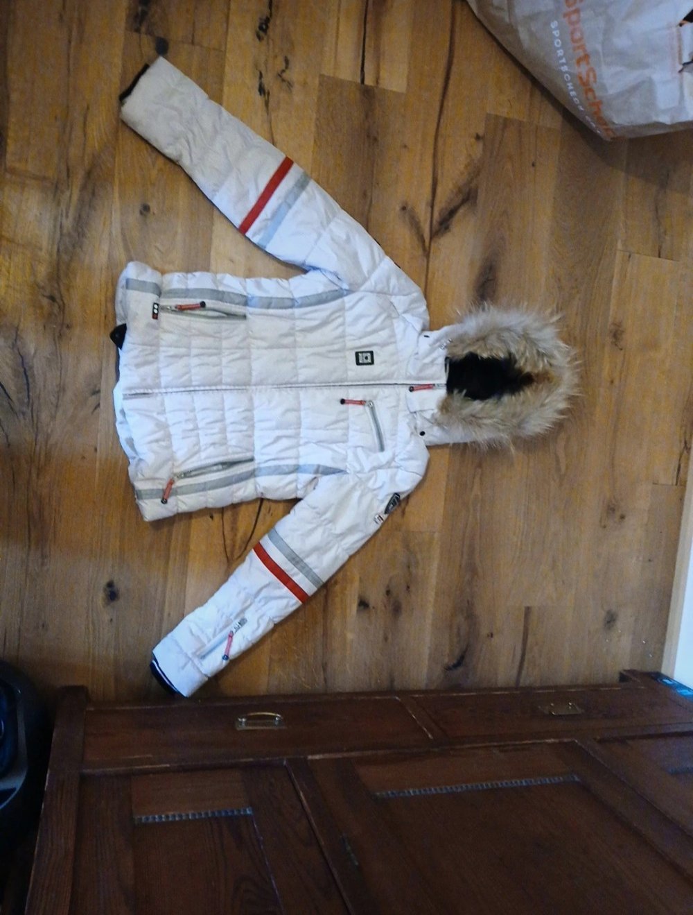 Die jacke ist 1 mal getragen und sieht so gut wie neu aus. Sie besitzt sehr viele kleine hochwertige Details und Features wie z.B. das Abnehmbare Fell. Sie hält sehr Warm und ist ein tolles Modestück für Frauen wie auch Männer auch wenn es eine Frauenjacke ist. Bei Fragen um den Preis bzw. noch mehr Bilder gerne melden?