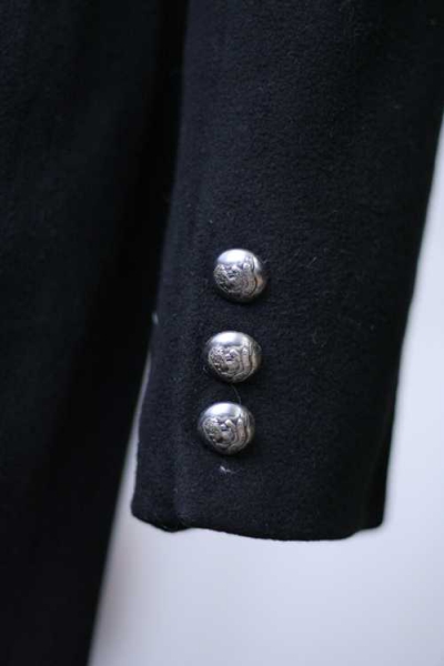Die zwei untersten Knöpfe sind ab (auch auf dem Foto), liegen aber zusammen mit weiteren Ersatzknöpfen bei meiner Mama. Falls Interesse an dem Mantel besteht, nähe ich sie wieder an.