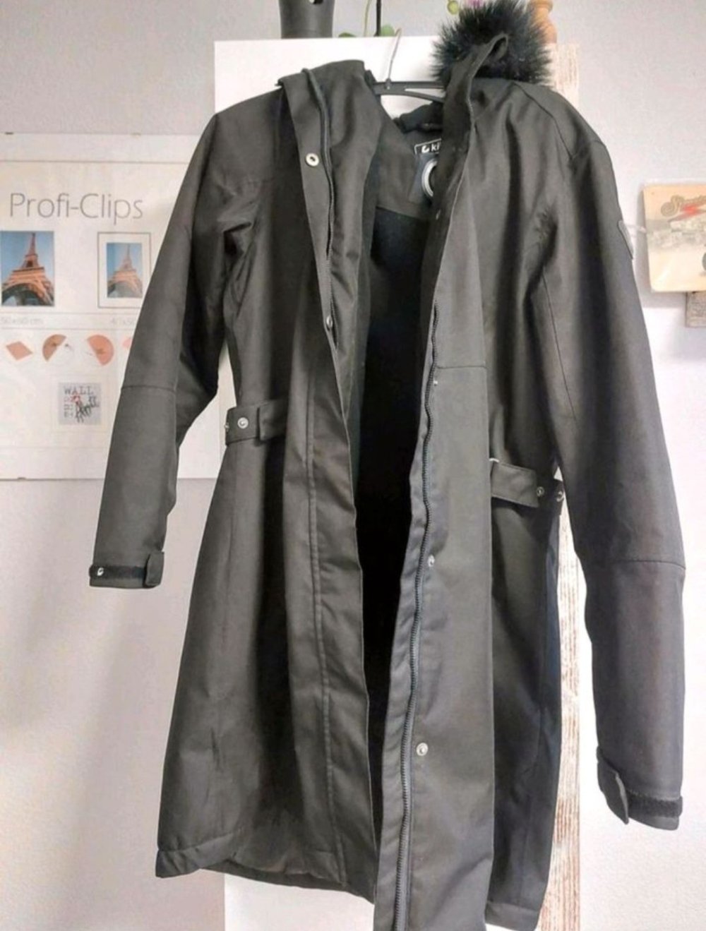 Outdoor Jacke schwarz Größe 42 Kapuze (abknöpfbar) – wenig getragen