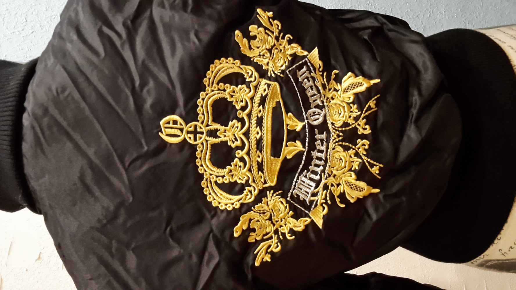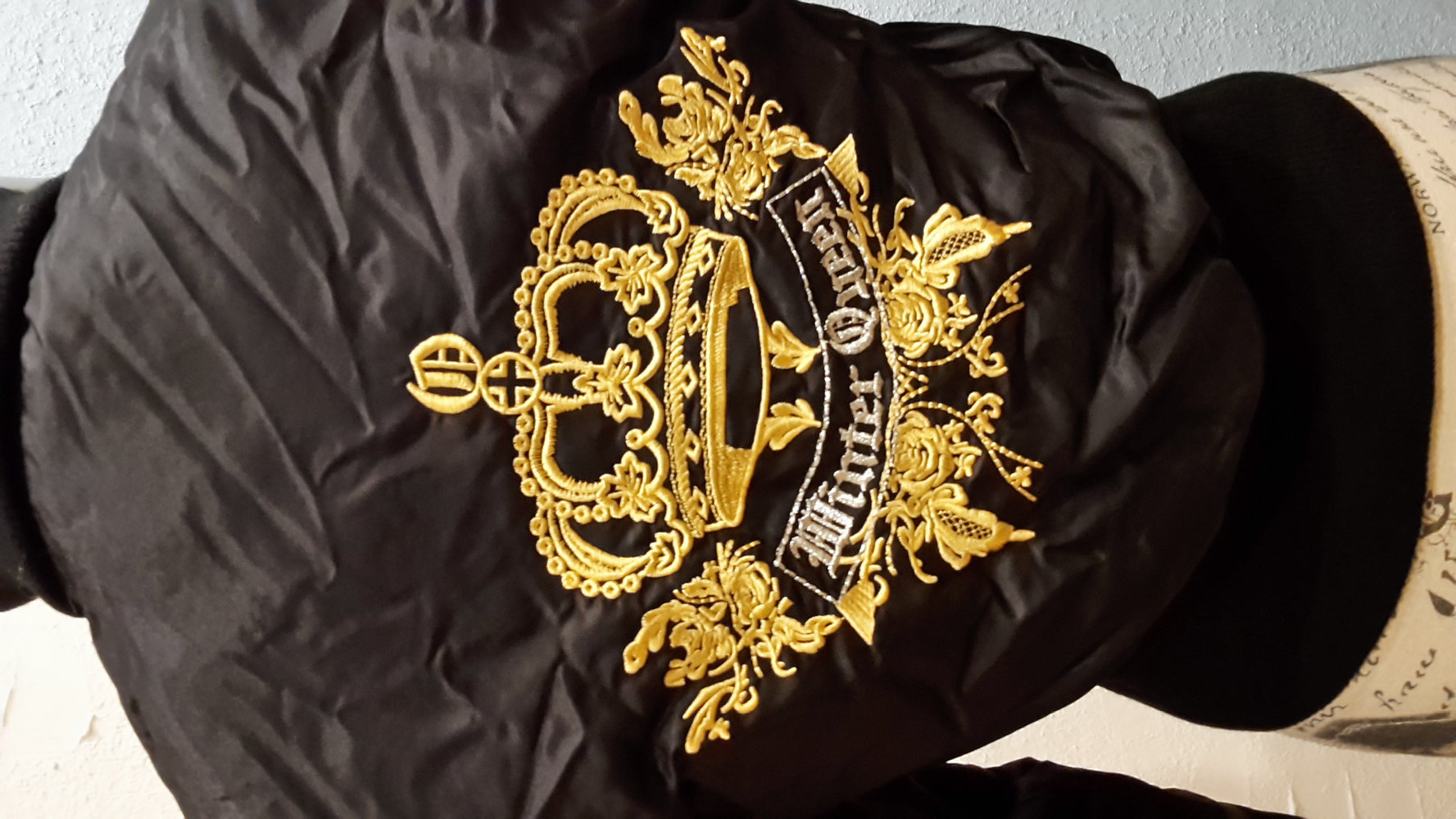 Auf dem Rücken ist eine große goldene Krone aufgestickt mit der Aufschrift "Winter Queen". Ein wirklich tolles Stück.