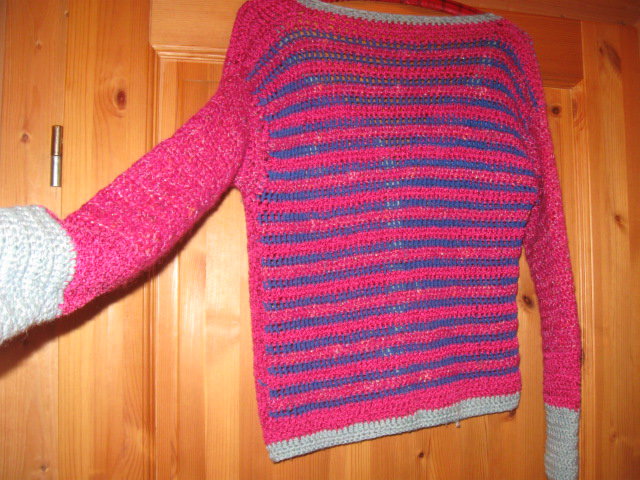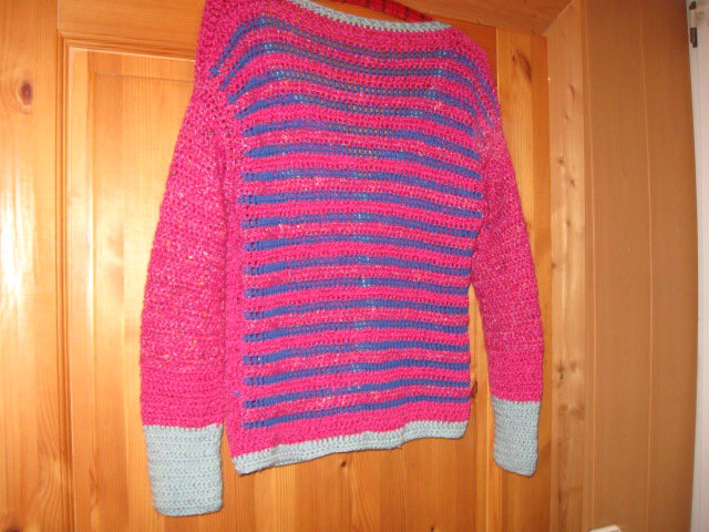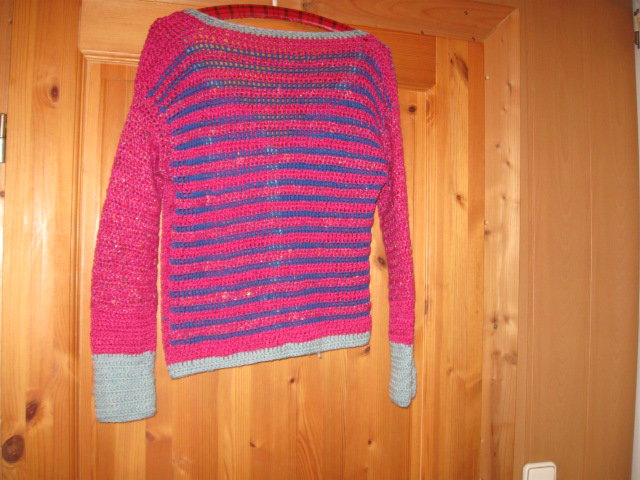 Biete eine der ersten Gehversuche von Selbsthäkelten Teilchen. Diese Jacke besitzt einige Schönheitsfehler, was mich nie gestört hat. Die Strickart ist grob, von der Größe her, wäre es eine 38-42. Bitte die folgenden Maßangaben beachten: