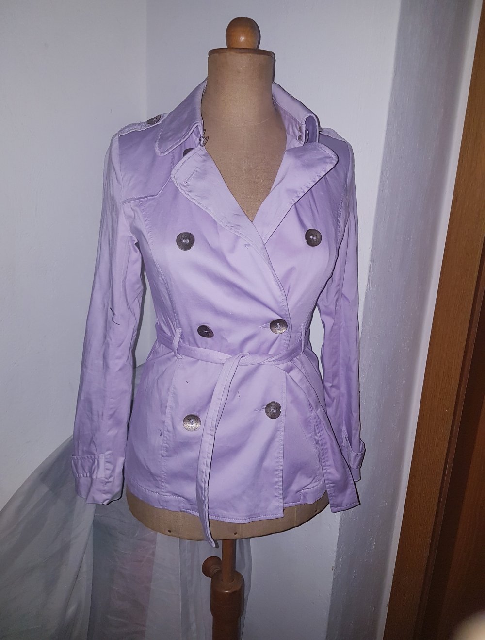 lila tranchcoat Pastellfarben mit Silber knopfleiste