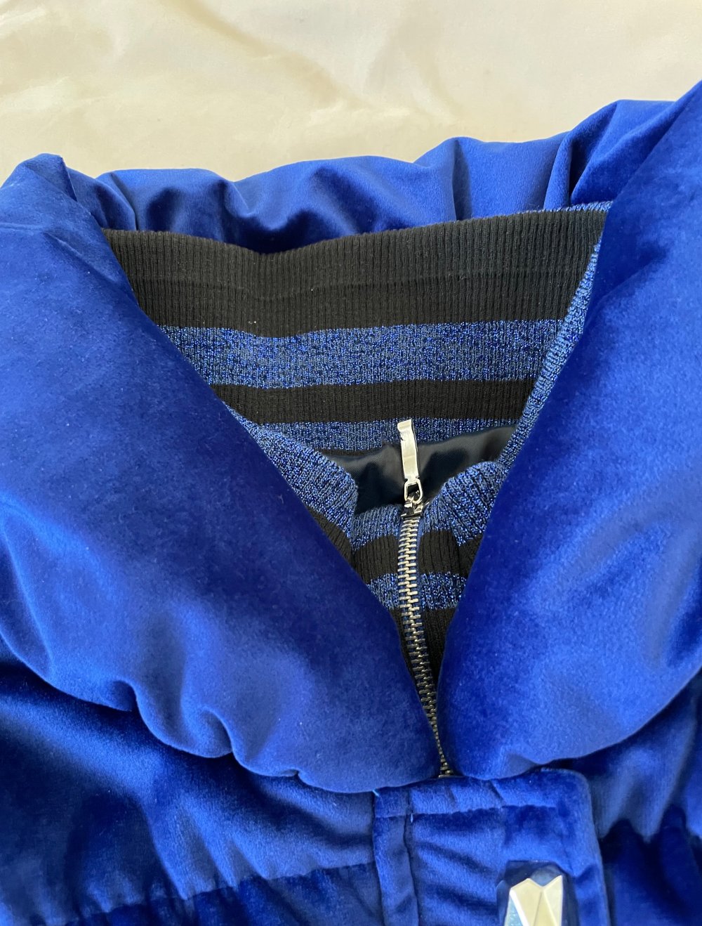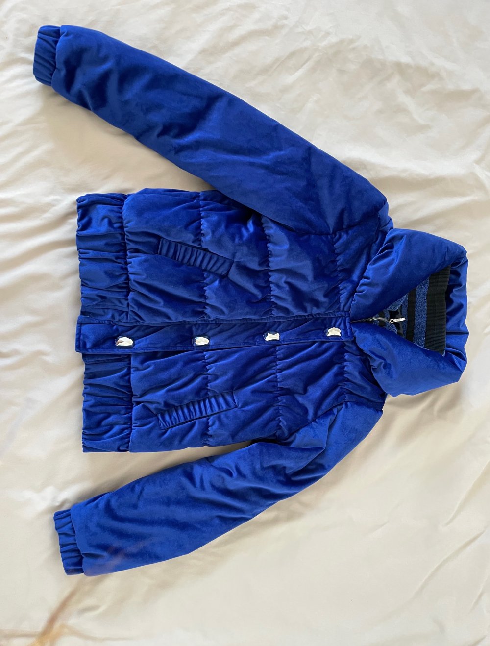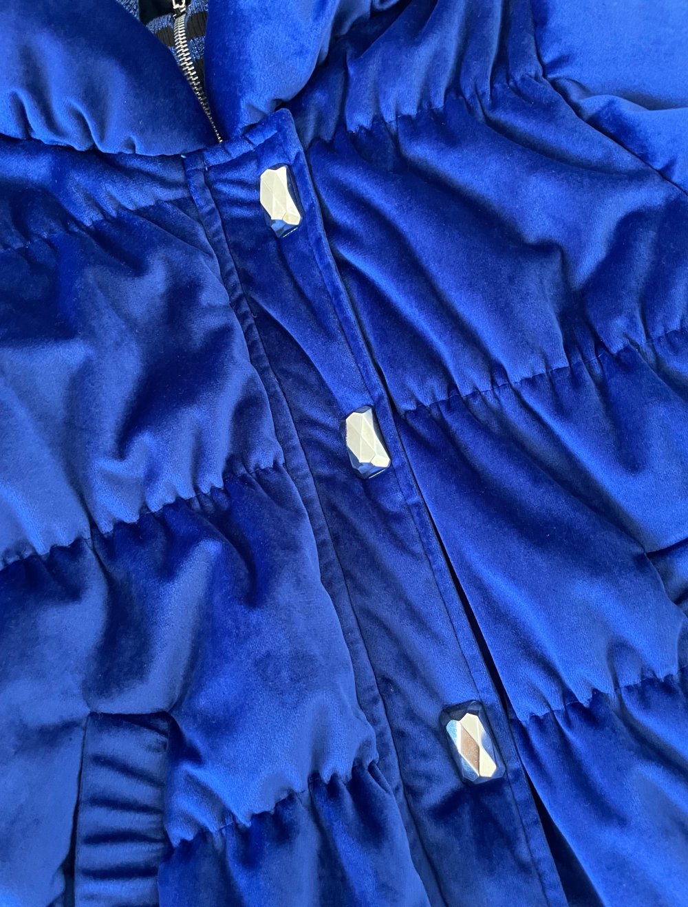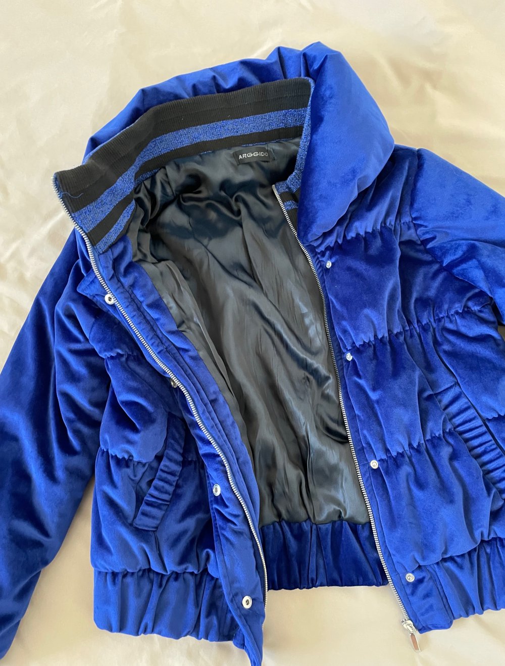 Diese stilvolle Damenjacke von Argido besticht durch ihr weiches, samtiges Material und die leuchtend königsblaue Farbe. Sie verfügt über eine Kapuze, einen Reißverschluss mit Druckknöpfen und zwei seitliche Taschen. Die Rippstrickbündchen an Ärmeln und Saum sorgen für eine gute Passform und schützen vor kalter Luft. Ideal für den täglichen Gebrauch und besondere Anlässe.