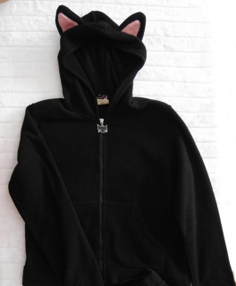 Emily the Strange Fleecejacke mit hellrosa Katzenohren und passenden Handschuhen ~ Gothic ~ Emo