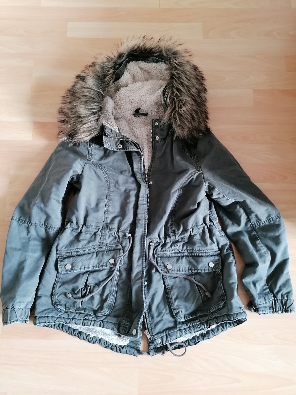 Parka Jacke Mantel gefüttert olivgrün grün khaki Gr. 42 H&M