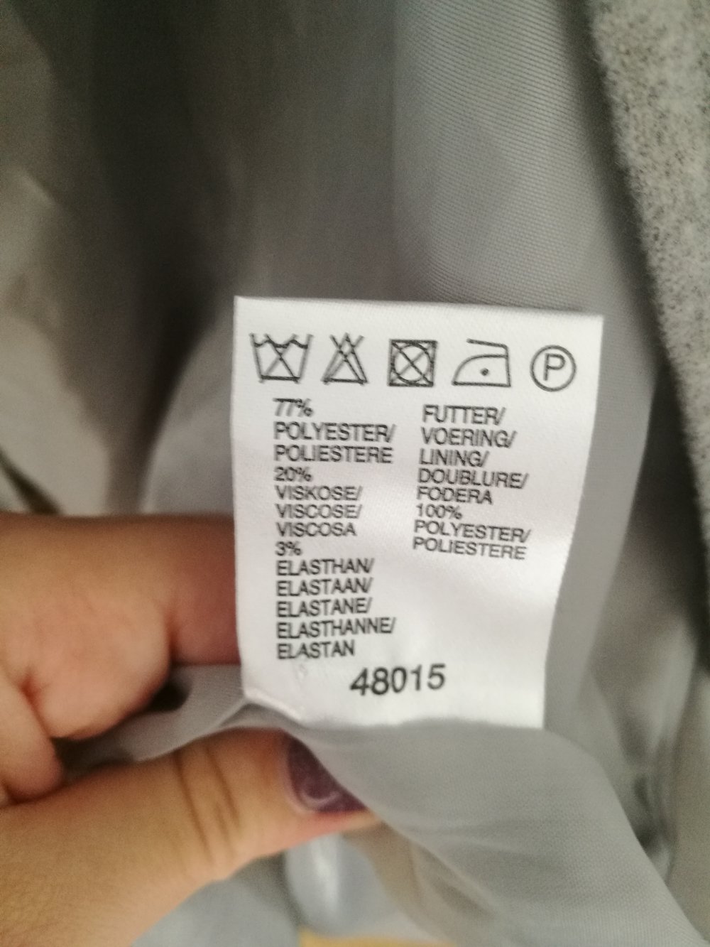 Obermaterial: 77% Polyestrer, 20% Viskose, 3% Elasthan