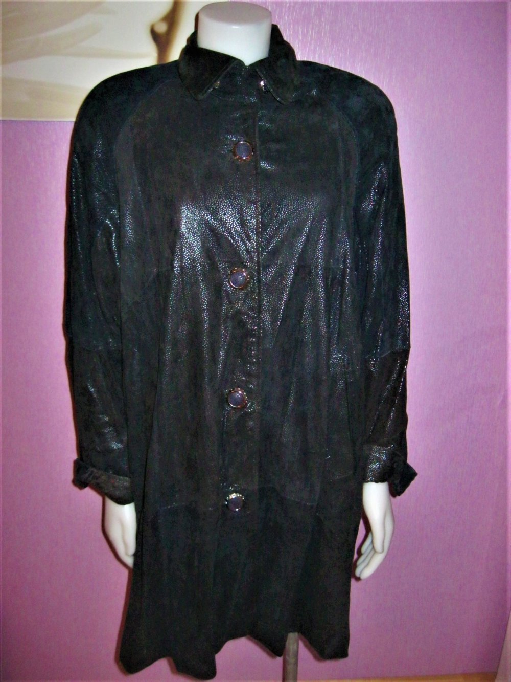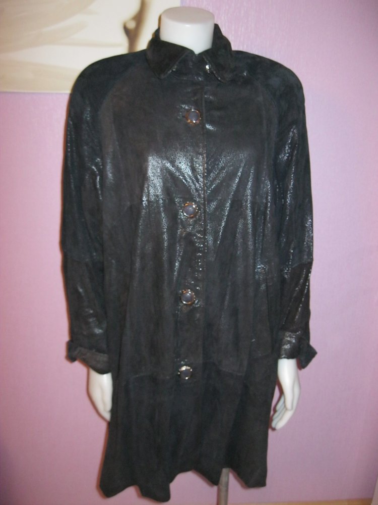 Designer-Mantel # Linea Pelle # Vintage # Leder # Schwarz