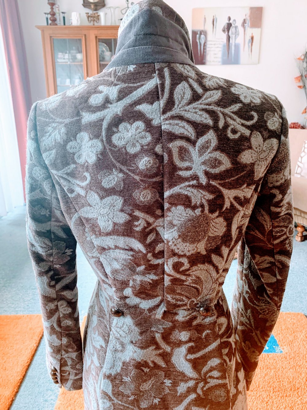 Exklusives Design hochwertig und aufwendig detailliert gearbeitet, dickes, weiches Material und eine exzellente Verarbeitung machen den Gehrock zu einem echten Highlight mit Blumen-Prägung. Vorne mit 3 Metall Knöpfe zu Schliessen, hinten mit Schlitz. Seitliche eingriff Taschen. Ärmel mit Knöpfe, Schulterpolstern. Sehr figurbetonte Form. Ohne Futter. Wurde nur 1 Mal kurz getragen. NW Angenehme Tragekomfort. Super kombinierbar. Teueres Marken Teil. Die Etiketten sind nicht vorhanden. Wurde reduziert gekauft.
