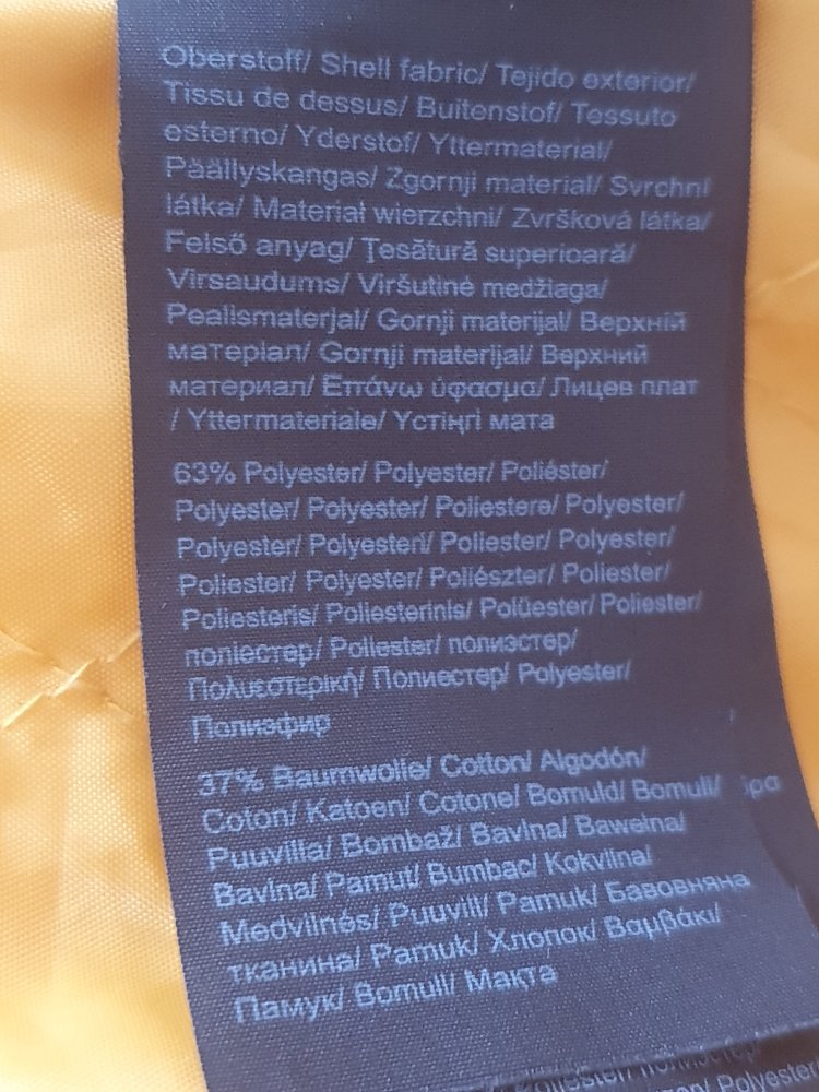 Oberstoff 63% Polyamid und 37% Baumwolle, ansonsten 100% Polyester