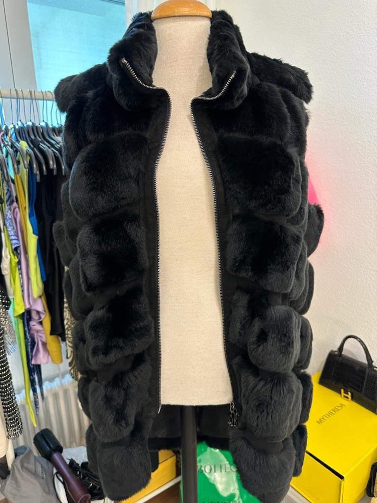 Schwarz Weste Echtes Fell