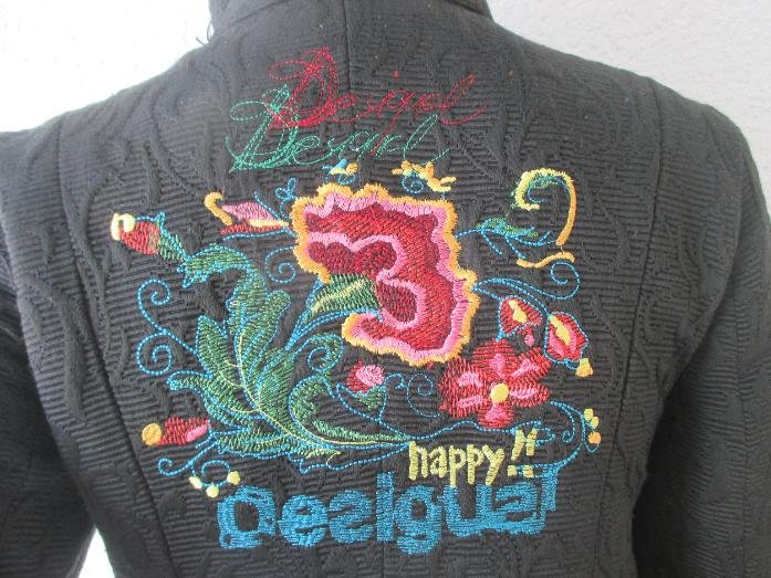 NEU * Blumen * Blüten * Flower- Power * Stickerei * Winter * Übergangs * Mantel "DESIGUAL" Gr. 34- 36/ XS- S * schwarz * bunt *