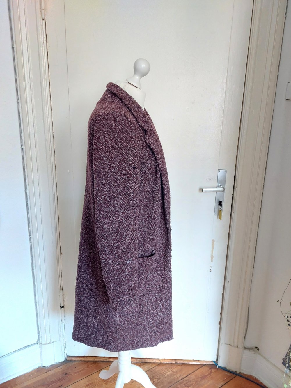 Der Mantel ist lang und hat vorn zwei Taschen :)