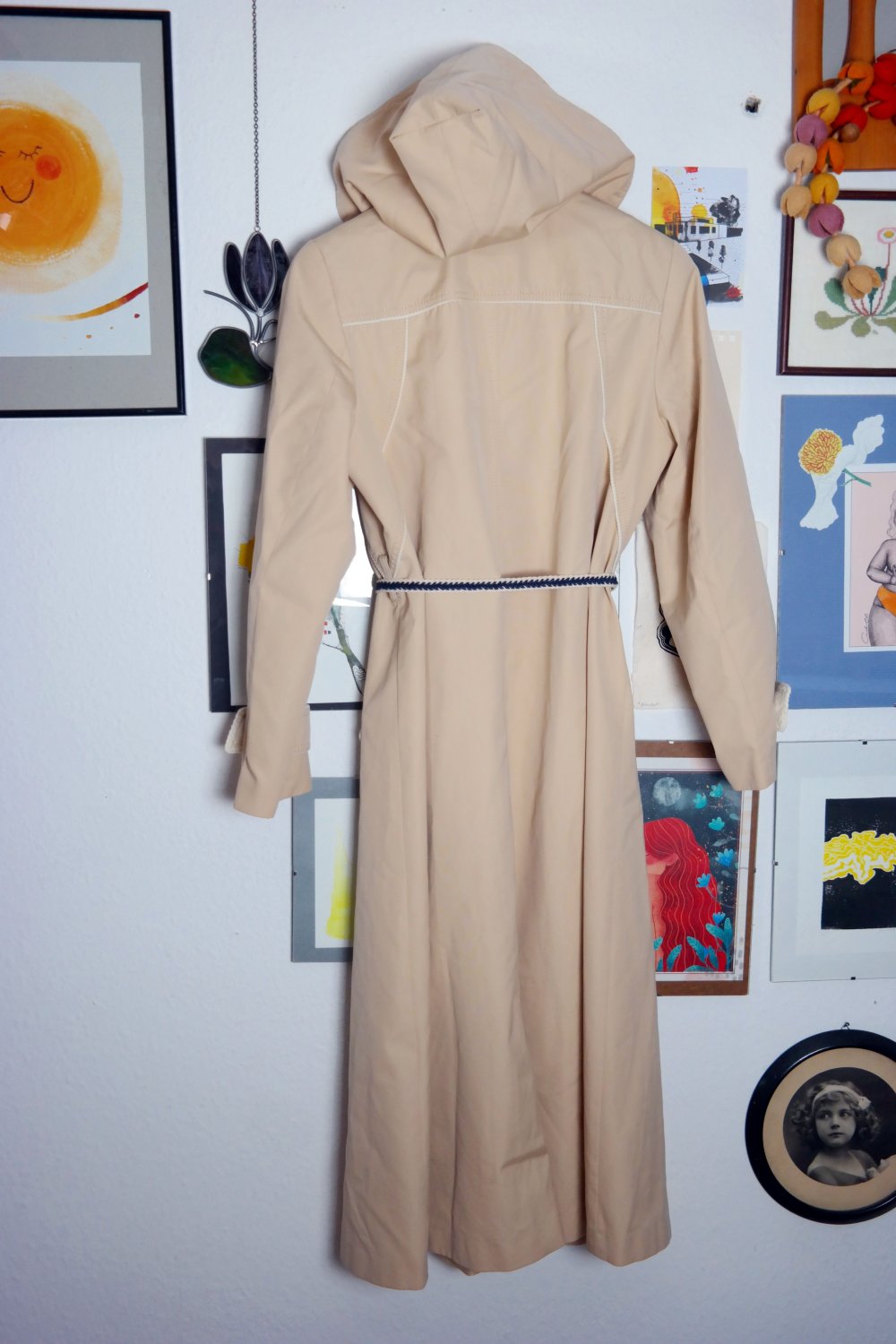 Vintage Mantel Trenchcoat Kapuze Kapuzenmantel Herbstmantel M L 38 40 Cord beige weiß