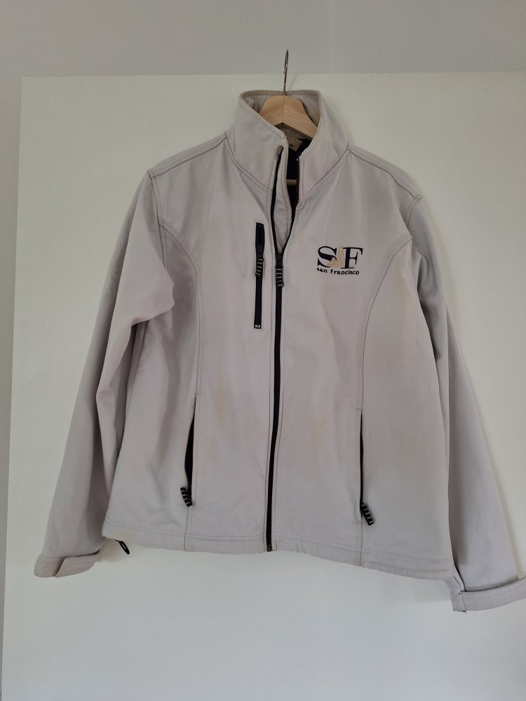Weiße Wind- und Wetterjacke, Gr. S original aus San Francisco mit Reißverschluss und Windkragen.