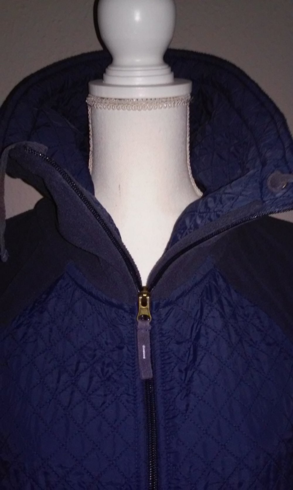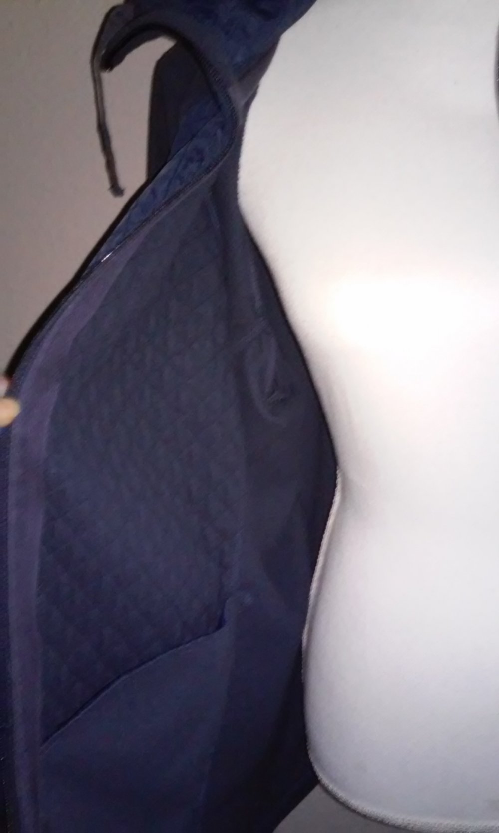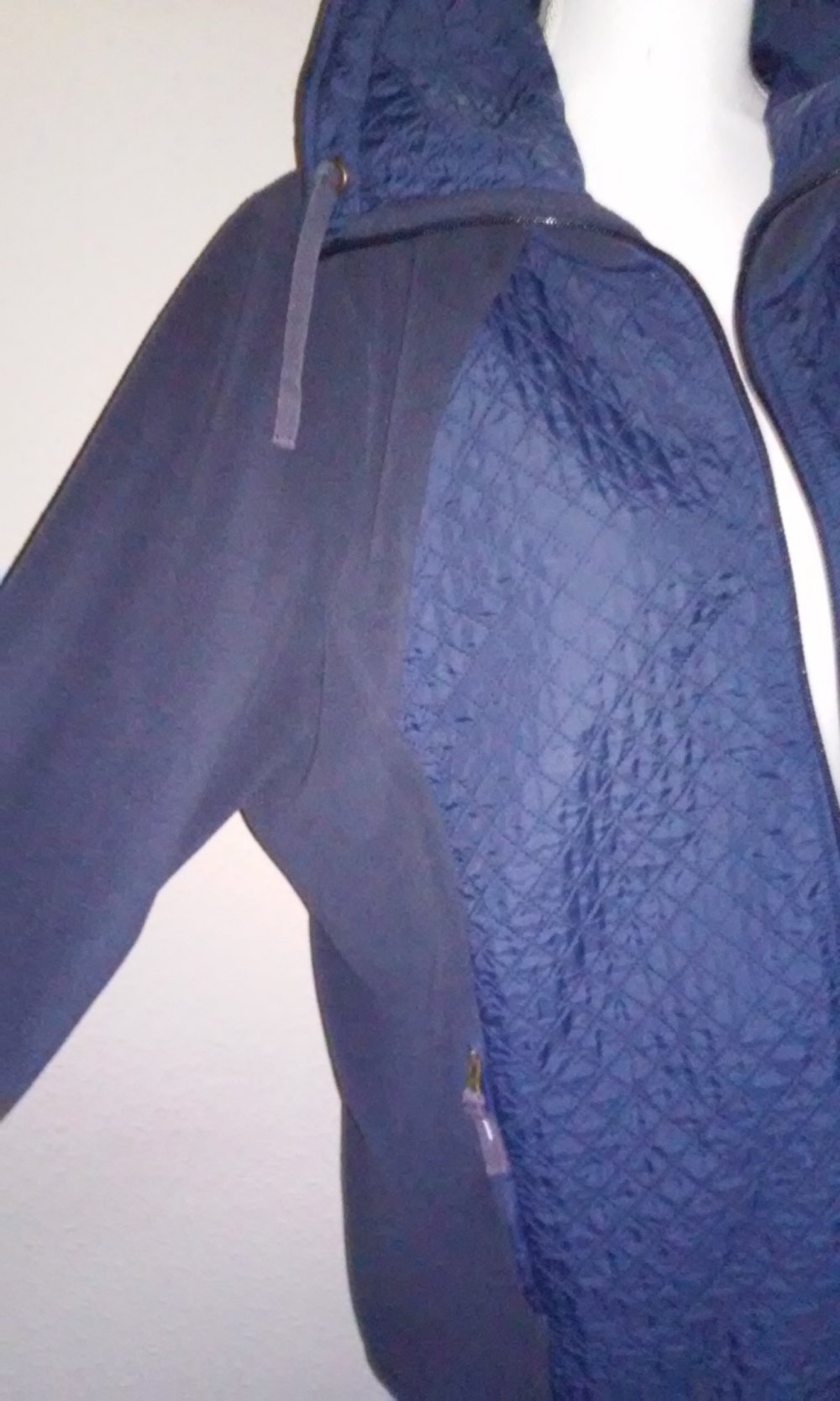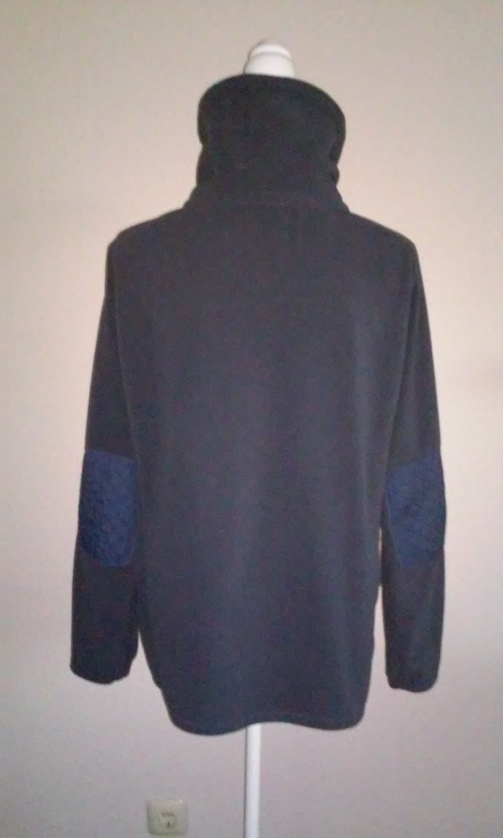 die Jacke ist in sehr gutem Zustand; vorn, Kragen und Ellenbogen mit abgesteppten Teilen; (vorn windabweisend, hinten leece schön warm; großer Kragen mit Kordelzug,