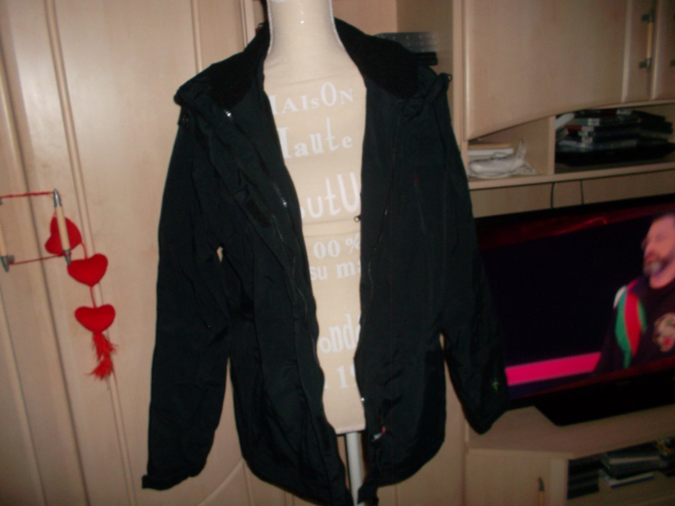 neue hochwertige jacke in schwarz,von ock.sehr warm,atmungsaktiv und wind dicht sowie wasserdicht.mit kaputze.innen mit einer festgemachten schwarzen fleecejacke.zusammen super warm.beide jacken sind natürlich auch einzeln wunderbar zu tragen,da die innere fleecejacke schnell raus sowie reingemacht werden kann.neupreis lag weit über 100 euro.die jacke war nun 2 jahre ungetragen im schrank und ist ganz neu,dafür ist sie echt zu schade.grösse 42.reißverschluss und mehrere taschen.