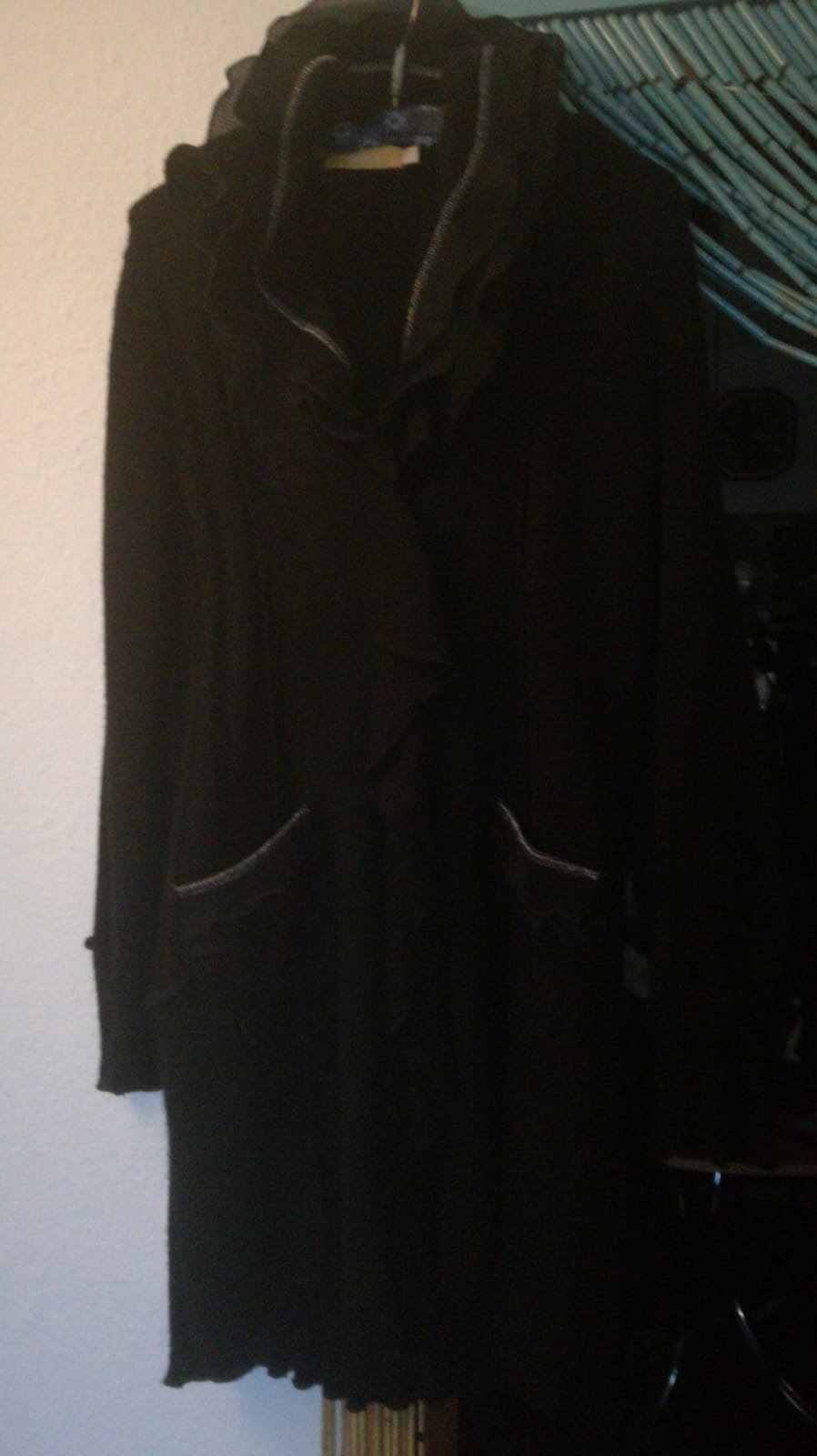 Biete diese Wahnsinns tolle längere Wolljacke. Die 3 teilige Knopfleiste ist mit einem Volant verdeckt und ansonsten wirkt diese Jacke angezogen elegant, aber auch sportlich.