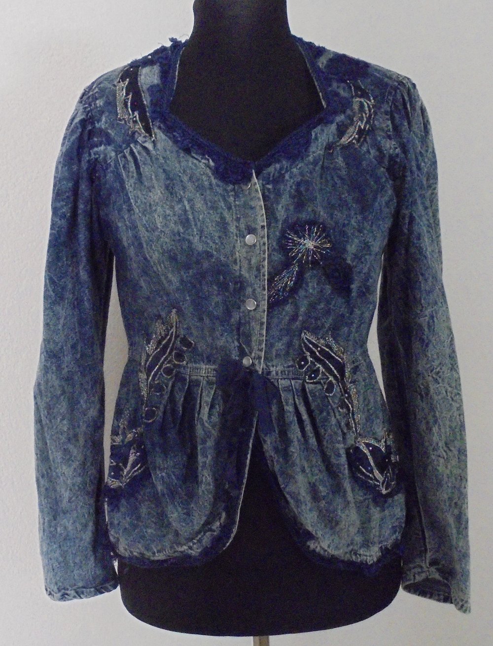 Ausgefallene Jeansjacke mit Applikationen, Gr. L