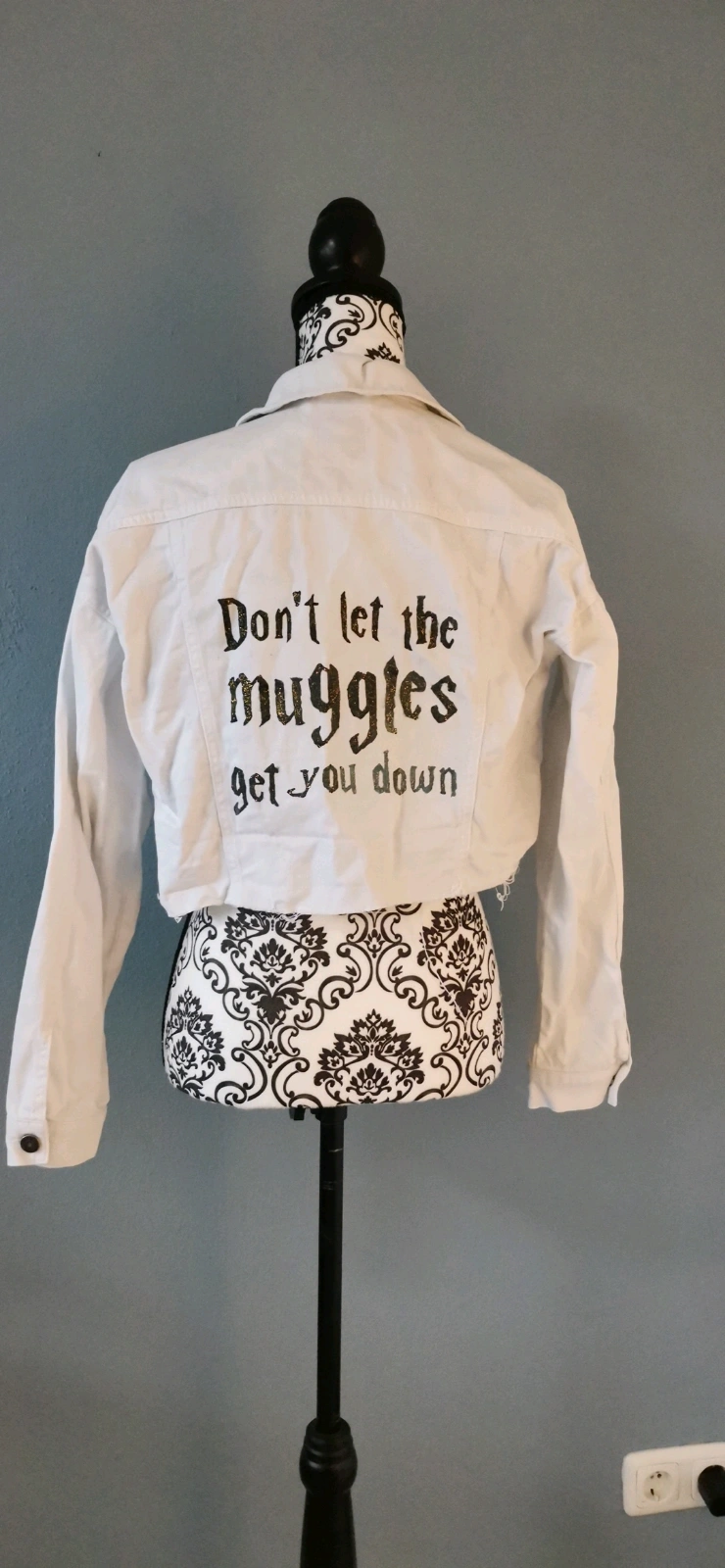 Tolle handbemalte Jeansjacke mit den Spruch "Don't let the Muggles get you down".